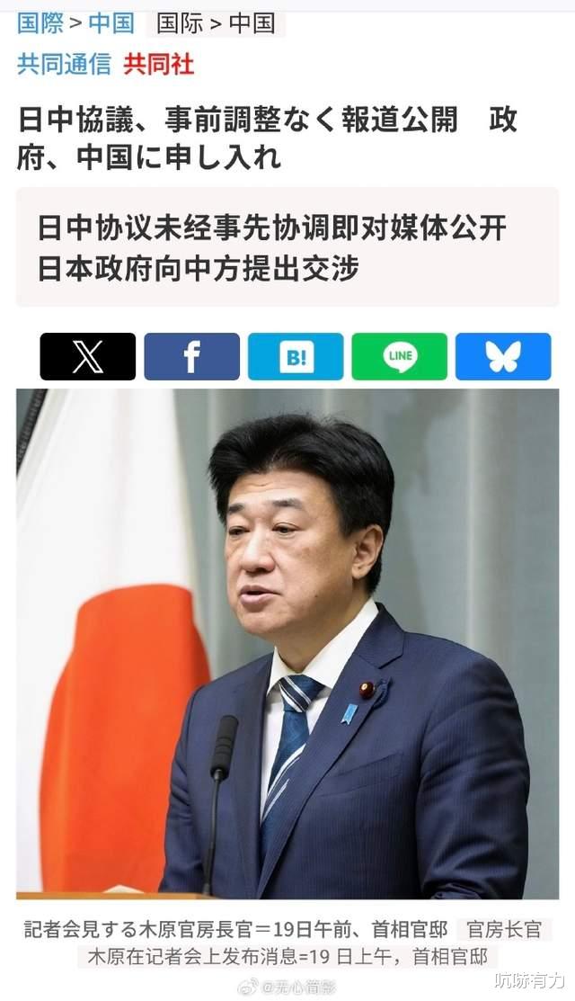 日本官房长官木原稔事后抱怨视频"未经协调流出",要向中方提出交涉。