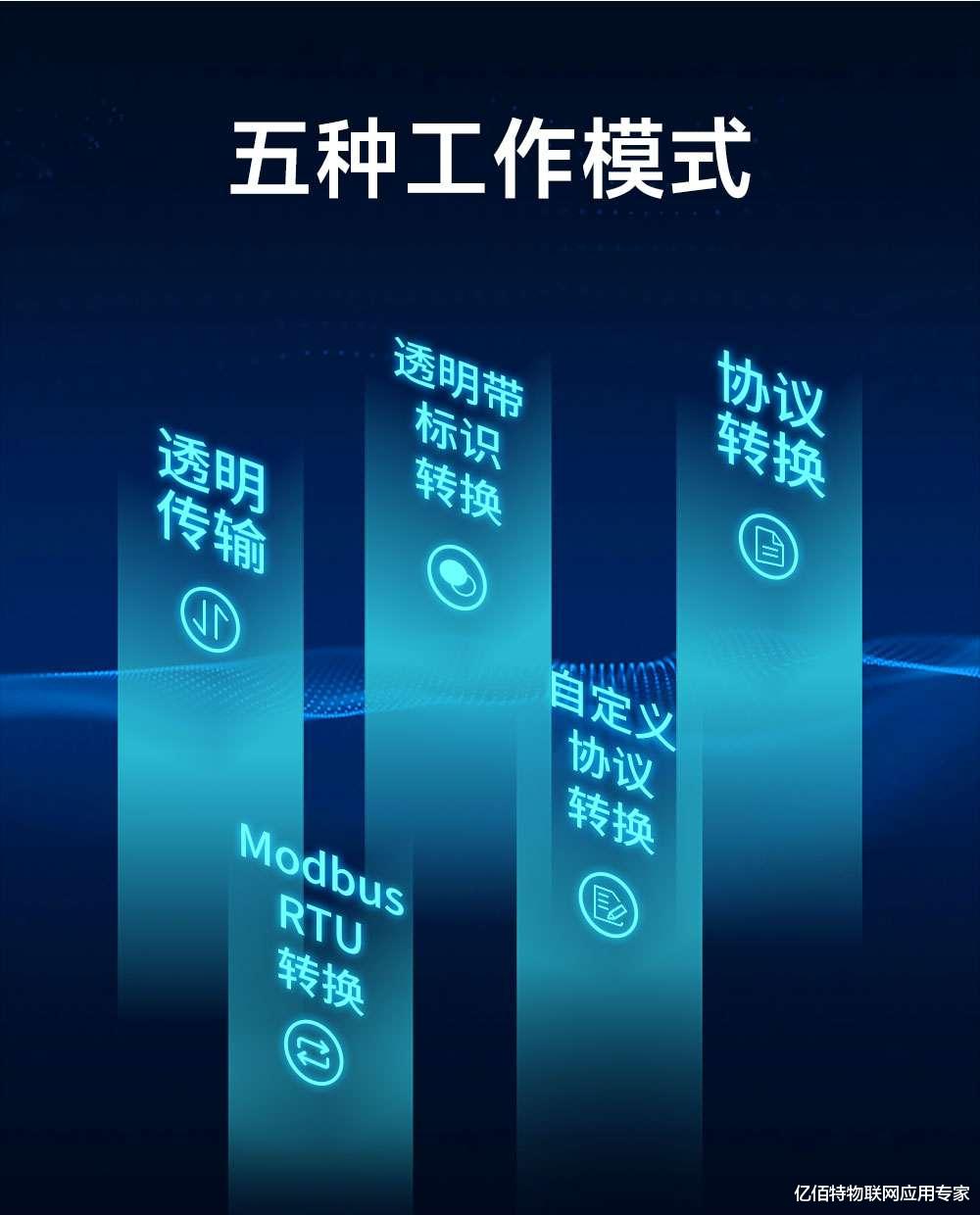 核心亮点:十一大特性,全面解析五种工作模式,灵活应对各种场景支持透明转换、透明带标识转换、协议转换、Modbus转换、自定义协议转换,满足从简单数据透传到复杂协议解析的多样化需求。