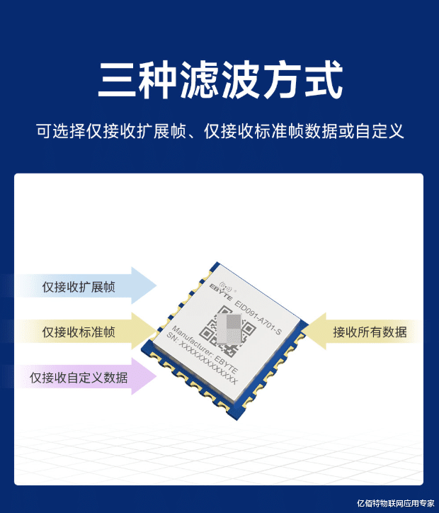 可选择仅接收扩展帧、仅接收标准帧或自定义数据,有效过滤总线噪声,减轻处理器负担。