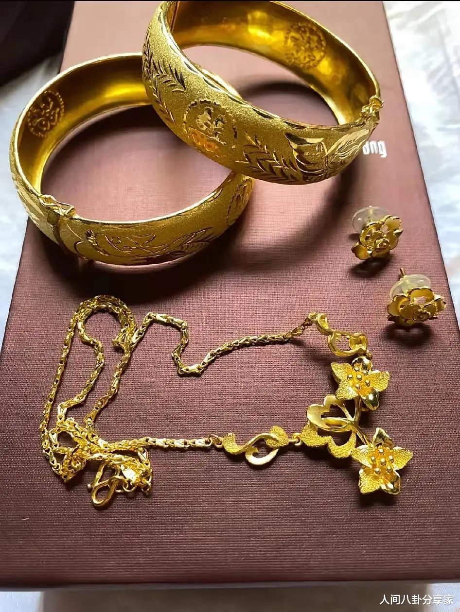 今天我瞒着老公,干了一件大事,把我的三金卖了。现在金价910元一克,我2019年买才398一克,这波涨得不少,最后卖了近26000元。三金早有些断裂,一直闲置着,拿去金店以旧换新,一克换一克还得掏手工费,换了也难得戴,太不划算。钱揣兜里才实在!