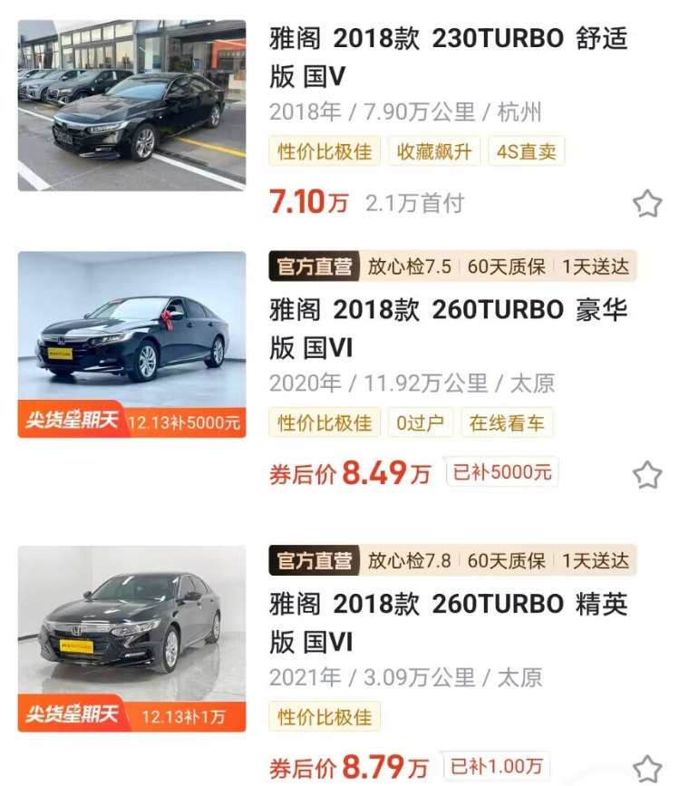 对比之下,更老的老雅阁,8年7万的残值表现,只能说明一件事儿:市场对日系车,对本田,对雅阁,甚至对油车的认可度,显然比我们预期的要高。