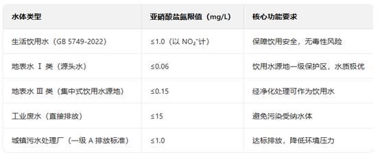 亚硝酸盐氮直接决定水体安全等级,核心场景限值如下,超限时需立即启动管控: