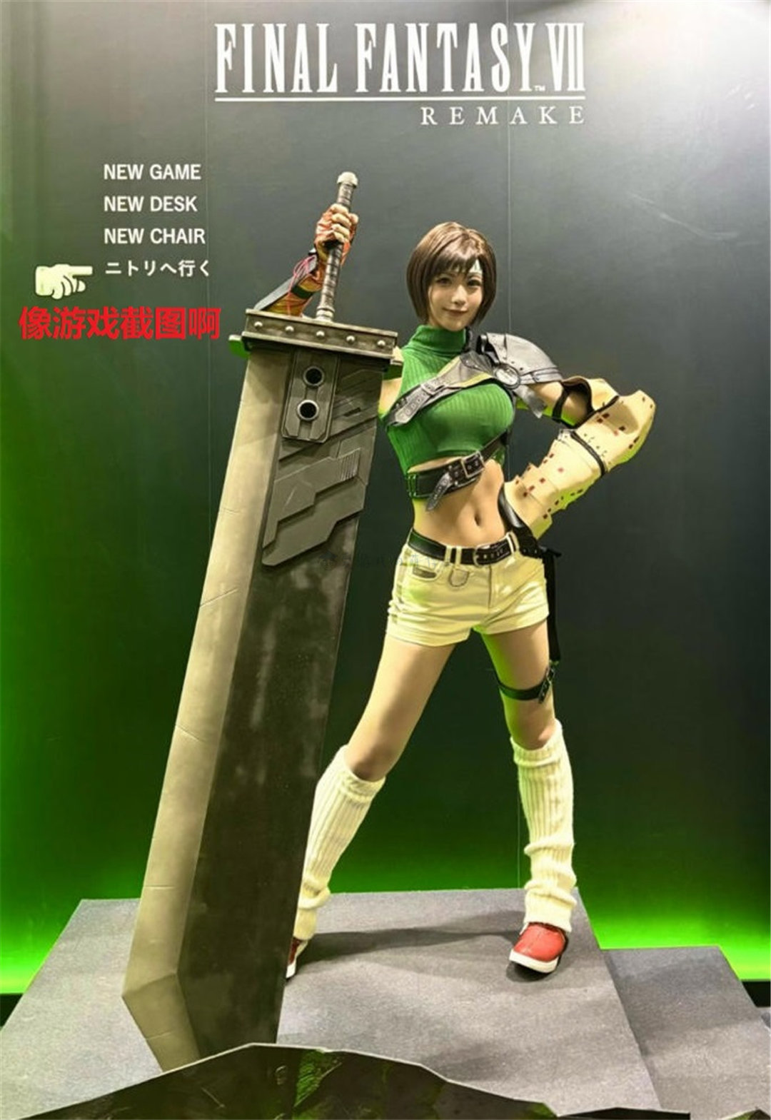 《最终幻想7:重制版》中的尤菲是满溢青春活力的美少女忍者,黑色短发利落俏皮,标志性的绿色上衣搭配护额,夸张的手臂护甲尽显忍者特质,稚气的面容上总挂着得意的笑容,既灵动又辨识度拉满。她性格开朗狡黠,爱开玩笑,是团队里的开心果,却在关键时刻藏着深沉的家国情怀与真性情。 你就说“猫乃うた”还原的像不像吧?如果有人跟我说,她就是尤菲的脸模,我都信啊。