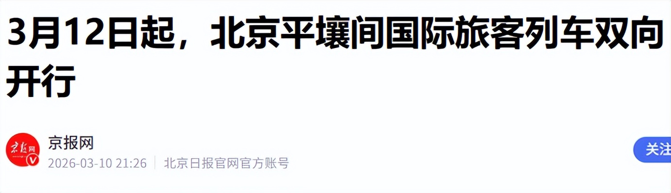 3.2026-03-10《3月12日起,北京平壤间国际旅客列车双向开行》-京报网