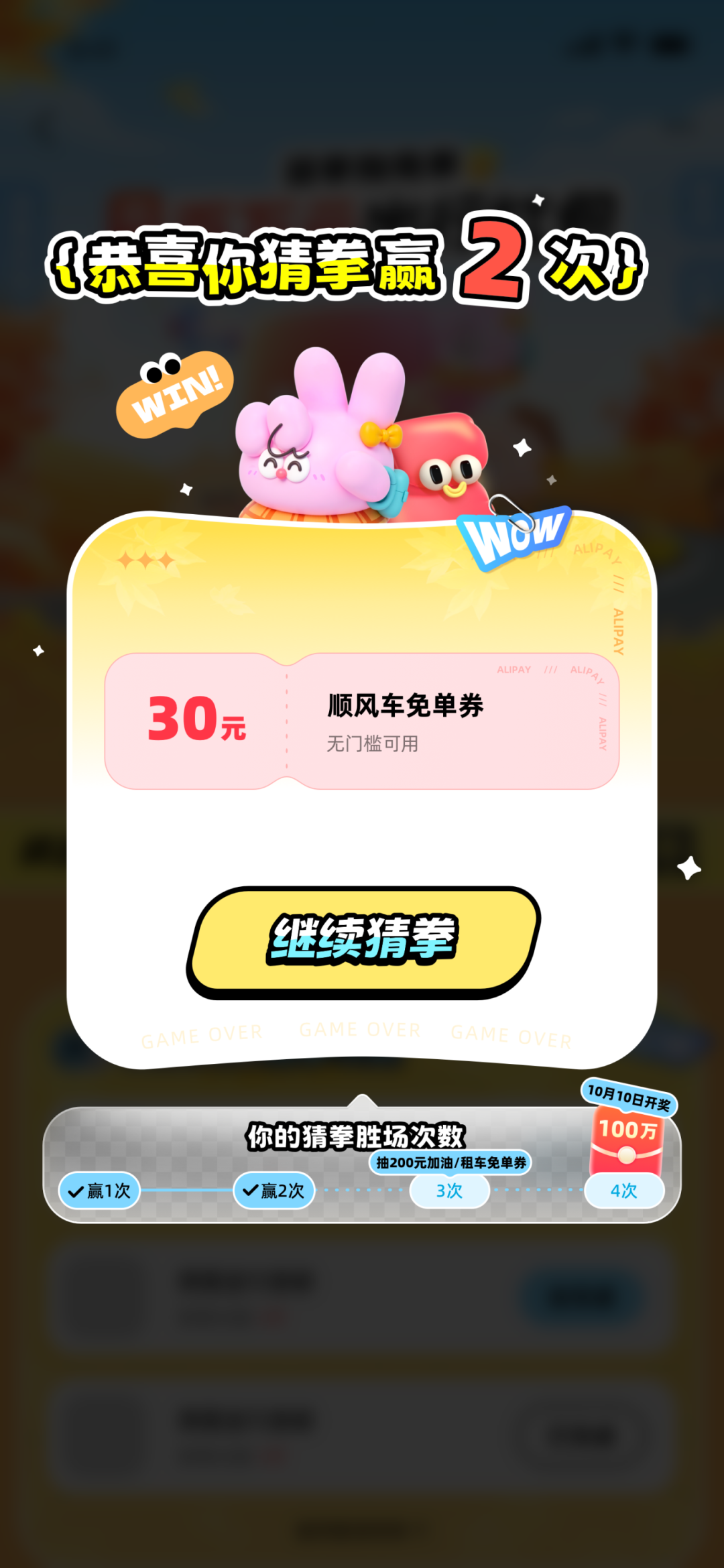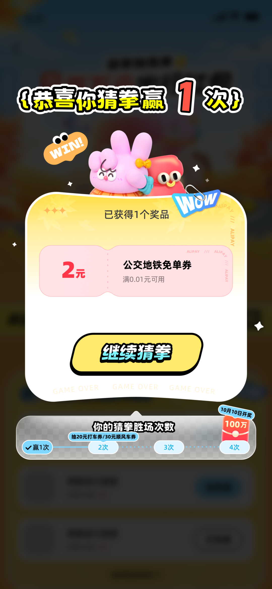 点【抽免单】按钮,每人每日都能猜拳抽奖