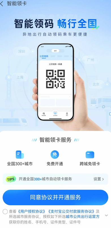 (例如常居地是杭州,十一去哈尔滨玩坐公交地铁,就不用再次领当地码便可乘车)