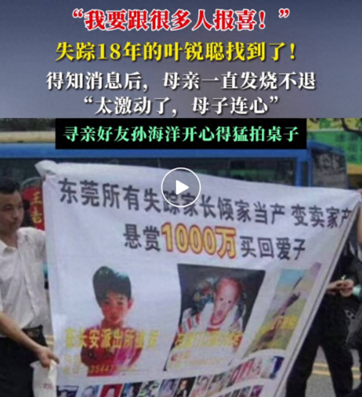 邓惠东的儿子叶锐聪出生于2007年2月,于2007年11月在广东东莞寮步镇失踪,多年来,邓惠东从未停止寻找自己的儿子,终于在今年迎来了好消息。