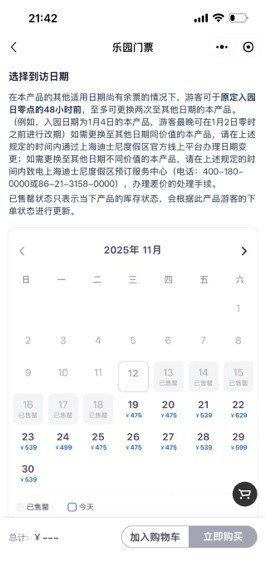 很多家长原本计划首个秋假带孩子错峰去上海迪士尼爽一把,结果打开官方小程序订票时发现,从11月12日到19日,几乎所有类型的门票都被一抢而空显示为“售罄”。