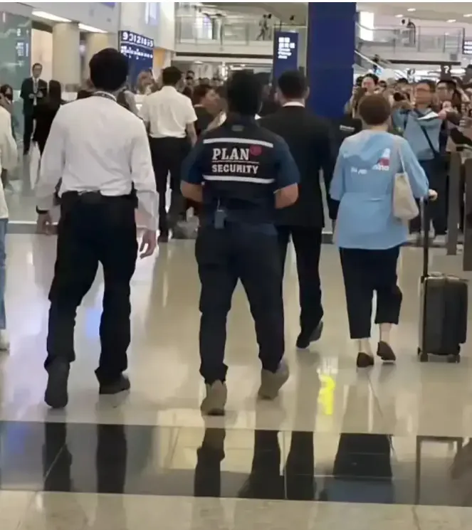从背后的视角来看,当天前来接机的人群可真不少,而且还有许多扛着“摄像大炮”的媒体记者们。