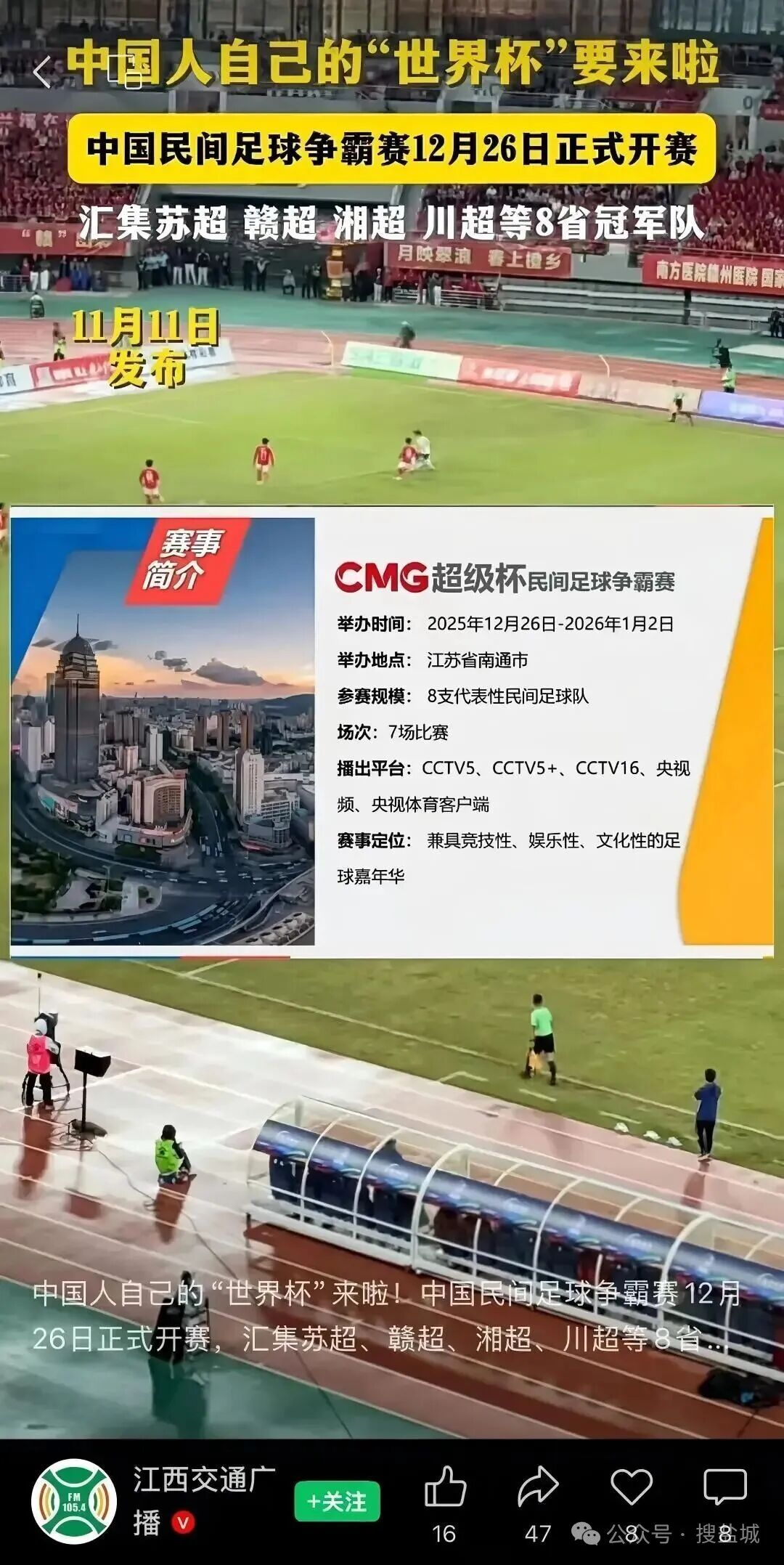 除了高水平的竞技对决,赛事期间还将配套举办一系列足球文化活动。南通当地将开展“足球进校园”“球迷嘉年华”等互动活动,邀请参赛球员与市民、球迷近距离交流,让足球运动真正融入大众生活。同时,赛事也将成为展示南通城市形象的窗口,借助央视直播的镜头,向全国观众展现南通的江海风光、人文底蕴与体育热情。