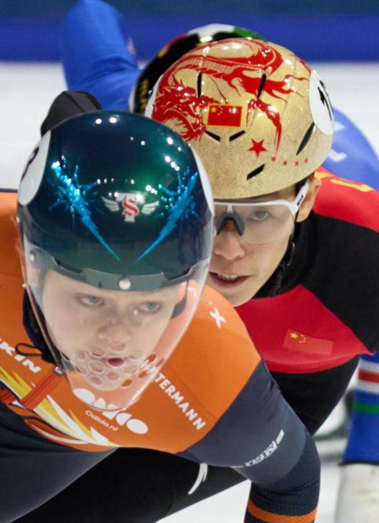 比赛刚一开始,三支队伍就展开了激烈的竞争,范可新在第一棒的表现非常稳定,她和荷兰队的选手几乎是并排滑行,两个人的身影在冰面上留下了漂亮的弧线。