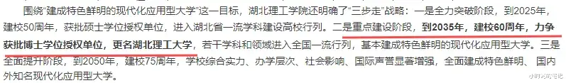 现在学校已经开始谋划进一步升级,目标直指“湖北理工大学”!在2021年的时候,学校就已经制定目标,到2035年,也就是建校60周年时,争取拿下博士学位授权,并更名为“湖北理工大学”。