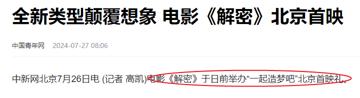 中国青年网-2024-07-27-全新类型颠覆想象 电影《解密》北京首映