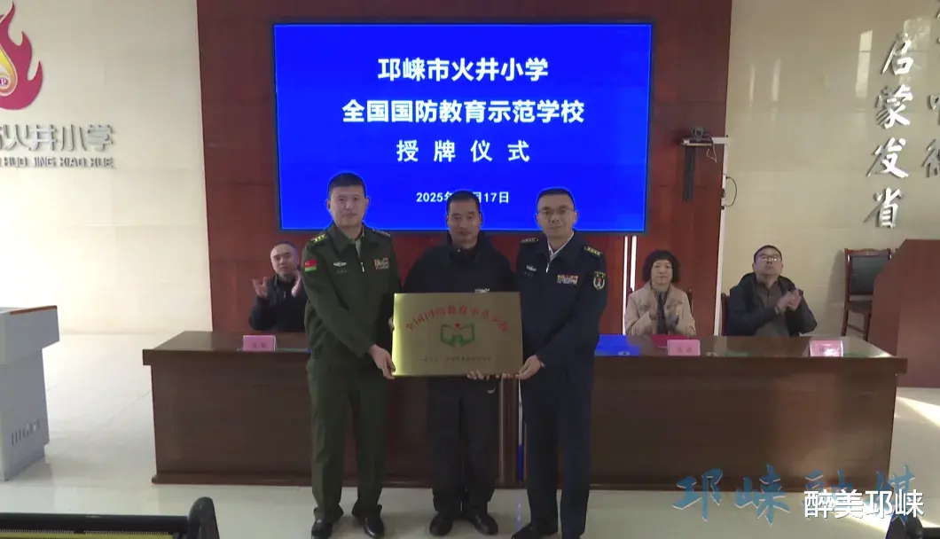 12月17日,中国人民解放军91278部队官兵代表来到邛崃市火井小学,为学校送上“全国国防教育示范学校”牌匾。