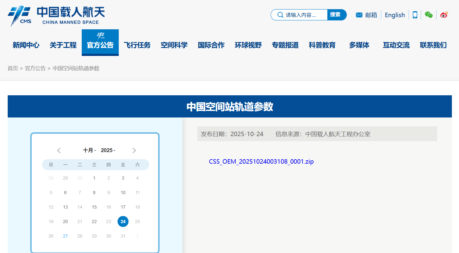 另一个是中国载人航天办公室公布的空间站轨道参数,从中可以知道中国空间站已经在不久前进行了一次变轨,并预计在10月30日进行第二次变轨,经过两次调相之后,空间站可以配合神舟二十一号完成快速交会对接,由此就能推测出神二十一的确切发射时间。