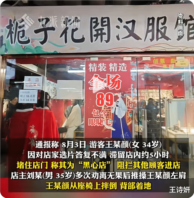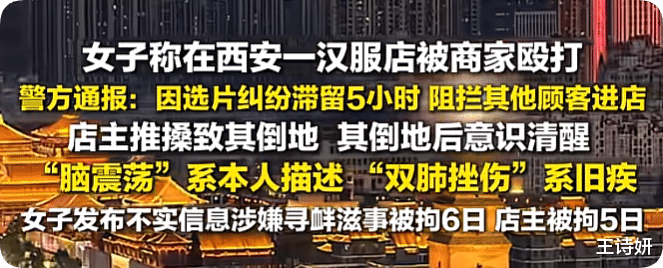 汉服店的老板打人够狠,王女士打出了脑震荡,因为气不过便曝光了此事,双方矛盾主要在于选片。