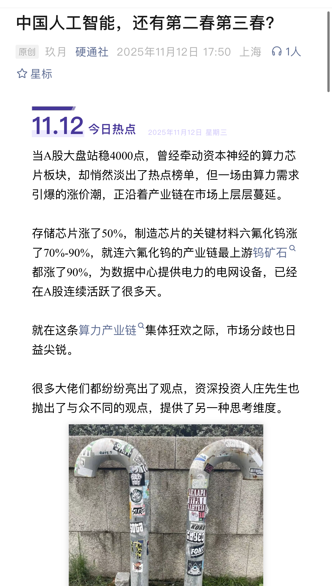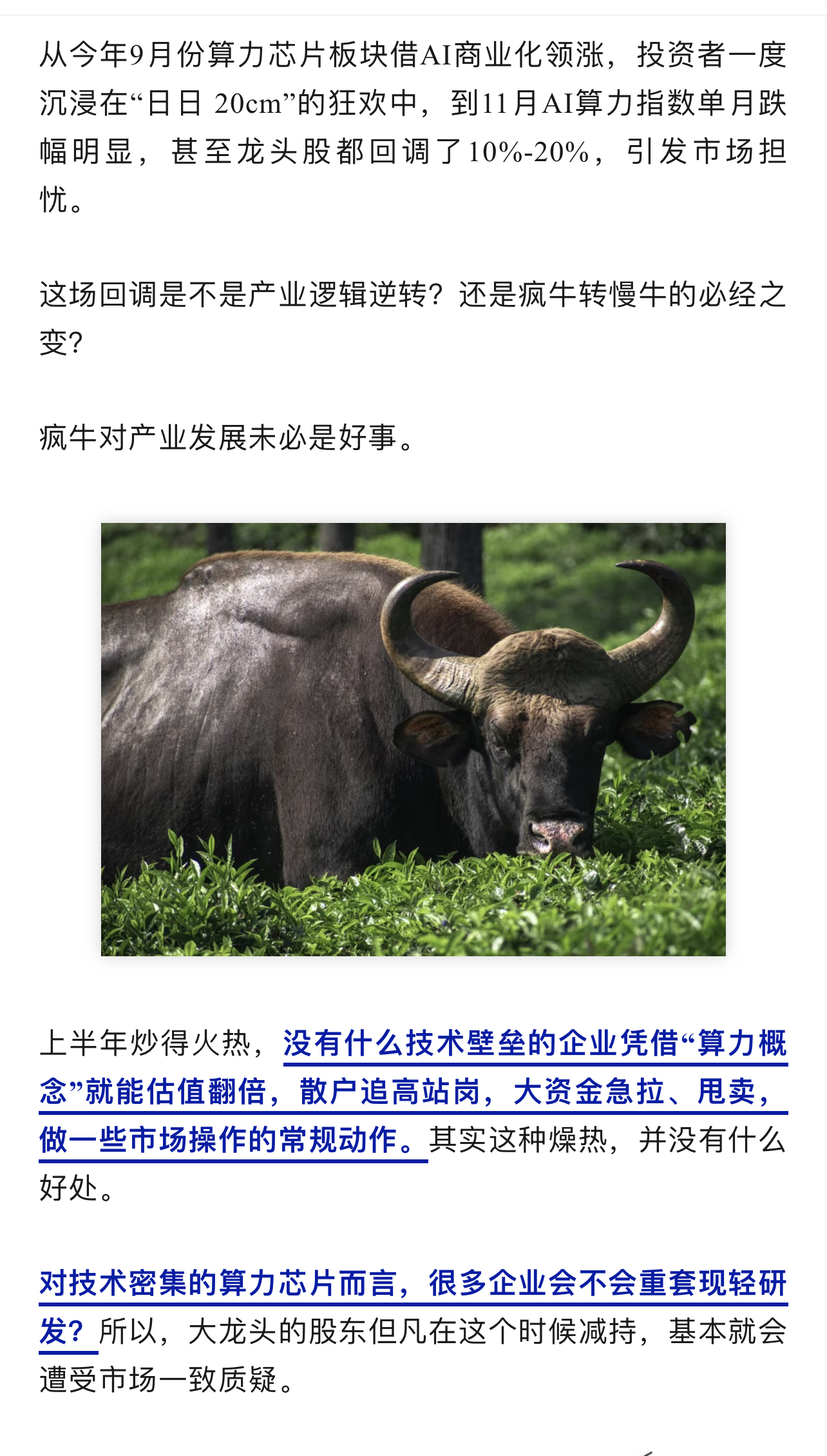 大数据中心还在要电,芯片还在要产能,人工智能行业见顶还早了,但是投资人们对人工智能的追捧,在目前这个阶段有点见顶了。有些股票涨的有点偏离市值,肯定是要调整一下的,美国的AI跌带着中国的AI也跌,不过中国很多算力股也涨的过猛了,只是需要调整,应该距离泡沫还很远。