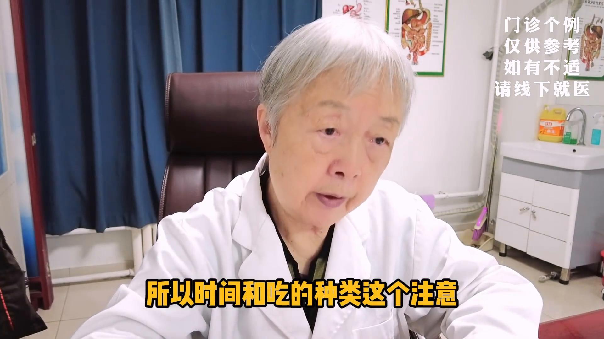 →第二、吃的种类要注意。主食注意什么?吃好消化的荤的东西,吃了没有不舒服中午吃去。因为荤的东西胆汁会出来比较多,在离着睡觉近没顺着十二指肠往下走,反流到胃里接着反流到嘴里头,所以就天天痛苦。所以时间和吃的种类注意,再买个垫子就不让他上去。