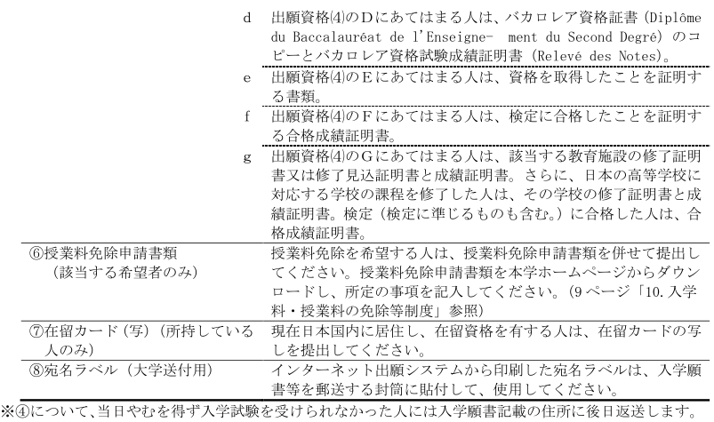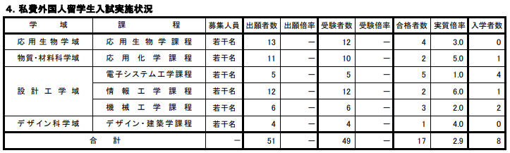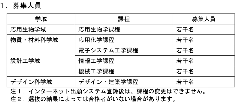 京都工艺纤维大学私费外国留学生入学者选拔方法为:全课程:小论文+面试EJU选拔科目:应用生物学域:EJU日语+数学2+理科3选2物质·材料科学域:EJU日语+数学2+物理+化学设计工学域:EJU日语+数学2+物理+化生2选1设计科学域:EJU日语+数学2+理科3选2出愿材料