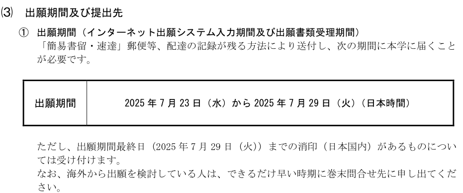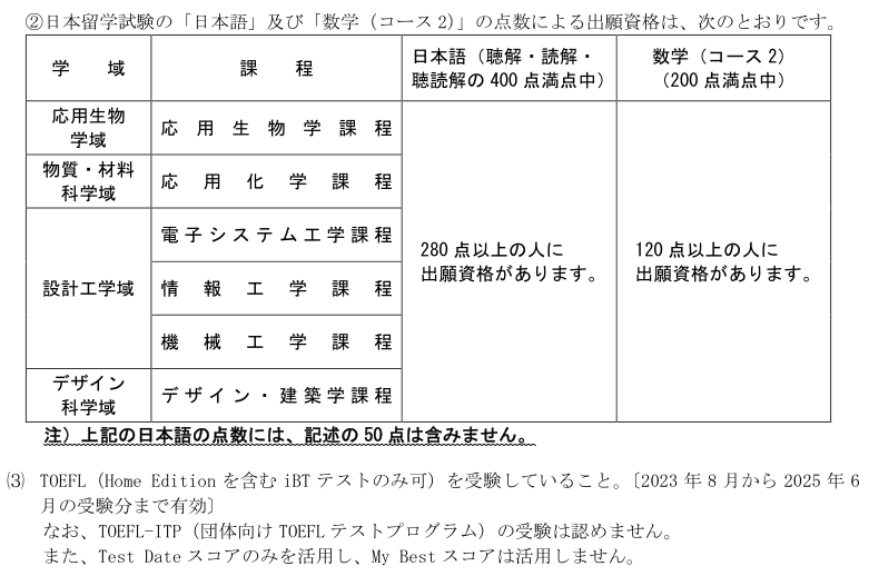 2.参加2024.11/2025.6EJU考试者3.EJU日语280+、数学2 120+4.参加2023年8月-2025年6月托福者
