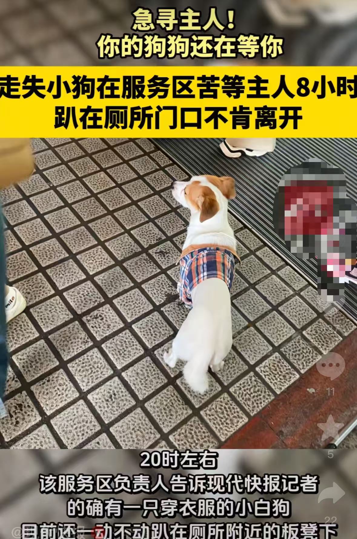 “可能是从车上溜下来时,主人没注意到。”现场有人这样猜测。这个推断让小狗的等待更显心酸——它选择守在厕所门口,或许是记得这是与主人最后分别的地方。