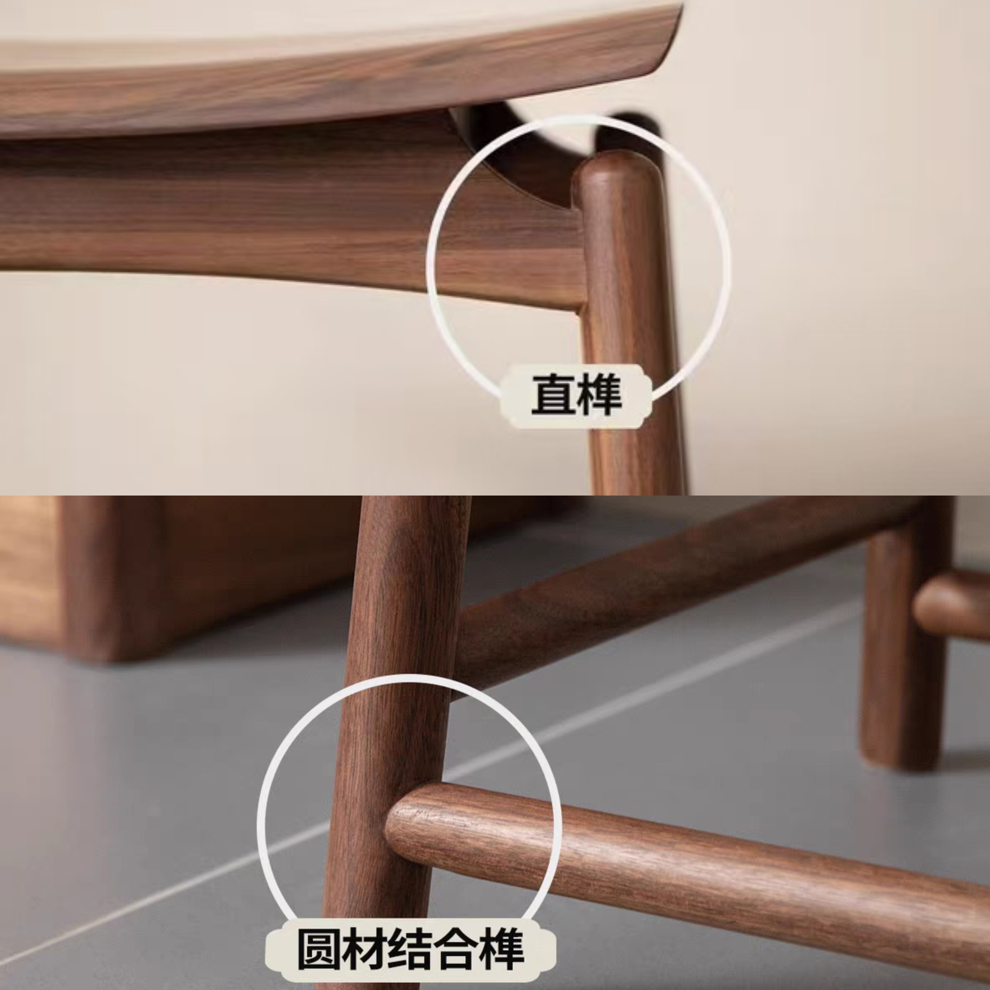 它的设计藏着中式美学的小心思:凳面弧度复刻传统“元宝”轮廓,既讨了“招财纳福”的好彩头,坐上去又能稳稳贴合腰背;凳腿用了榫卯工艺,没有一根钉子,却把黑胡桃木的温润纹理衬得格外有质感,往茶室一放是茶凳,摆进书房当坐具,连换鞋时的仓促都能慢成雅致。