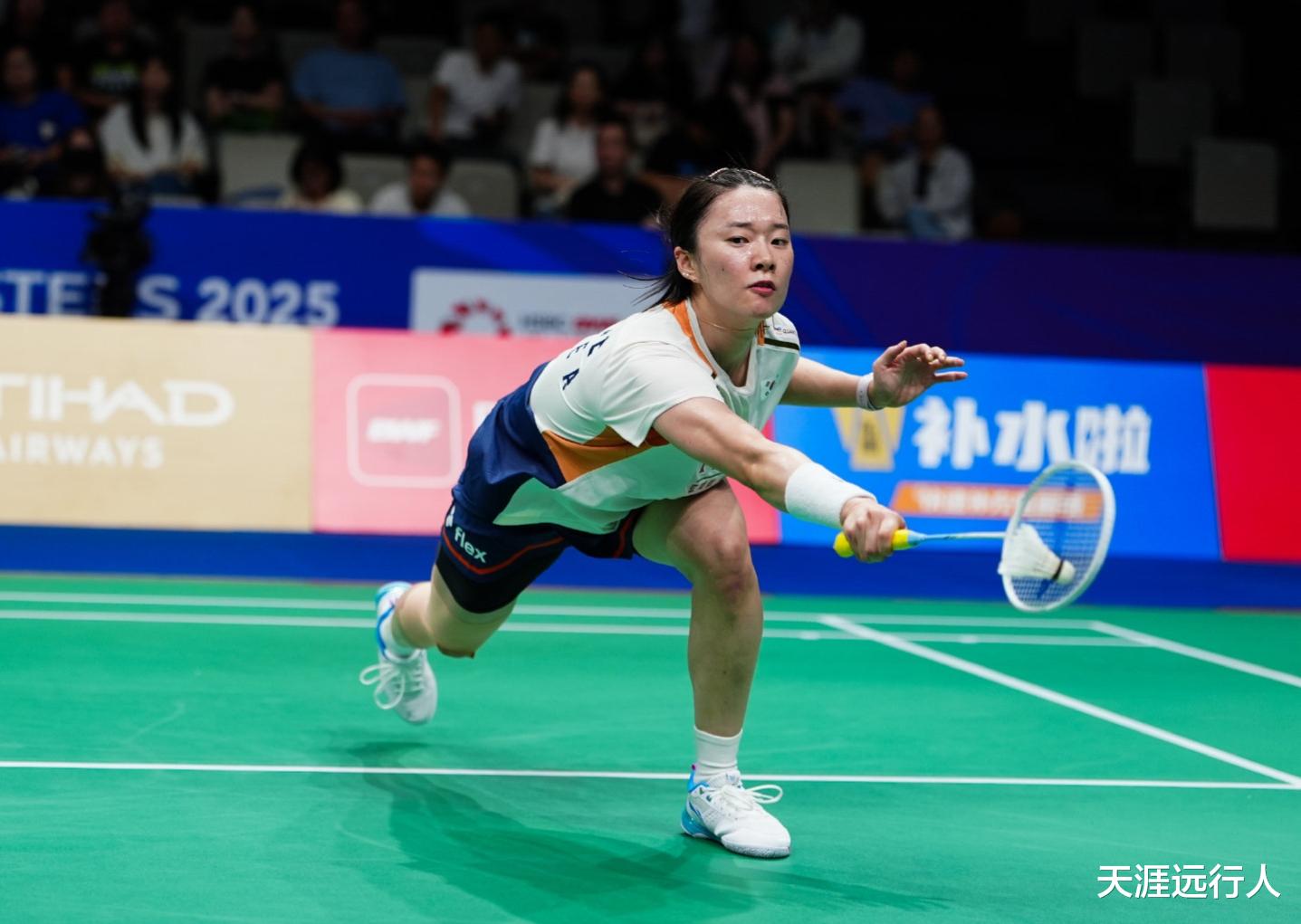 韩悦,德比战以22-20, 13-21, 21-19,鏖战三局,艰难抵抗住师姐陈雨菲的逆袭,险胜过关,晋级女单半决赛,打破职业生涯对战陈雨菲一胜难求的怪圈,终结十连败,下一场静待本轮战胜了王祉怡的韩国球员金佳恩。