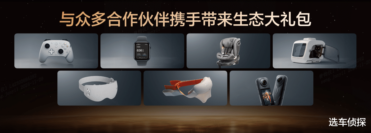 此外,比亚迪还联合好孩子、倍轻松、影石等众多合作伙伴,推出智能儿童安全座椅、智能宠物安全座、智能眼罩、颈部按摩仪、游戏手柄、影石Insta360运动相机等众多生态周边,所有设备均可与车机联动,通过语音控制,让家庭出行、户外探险等场景的体验更丰富、更便捷。