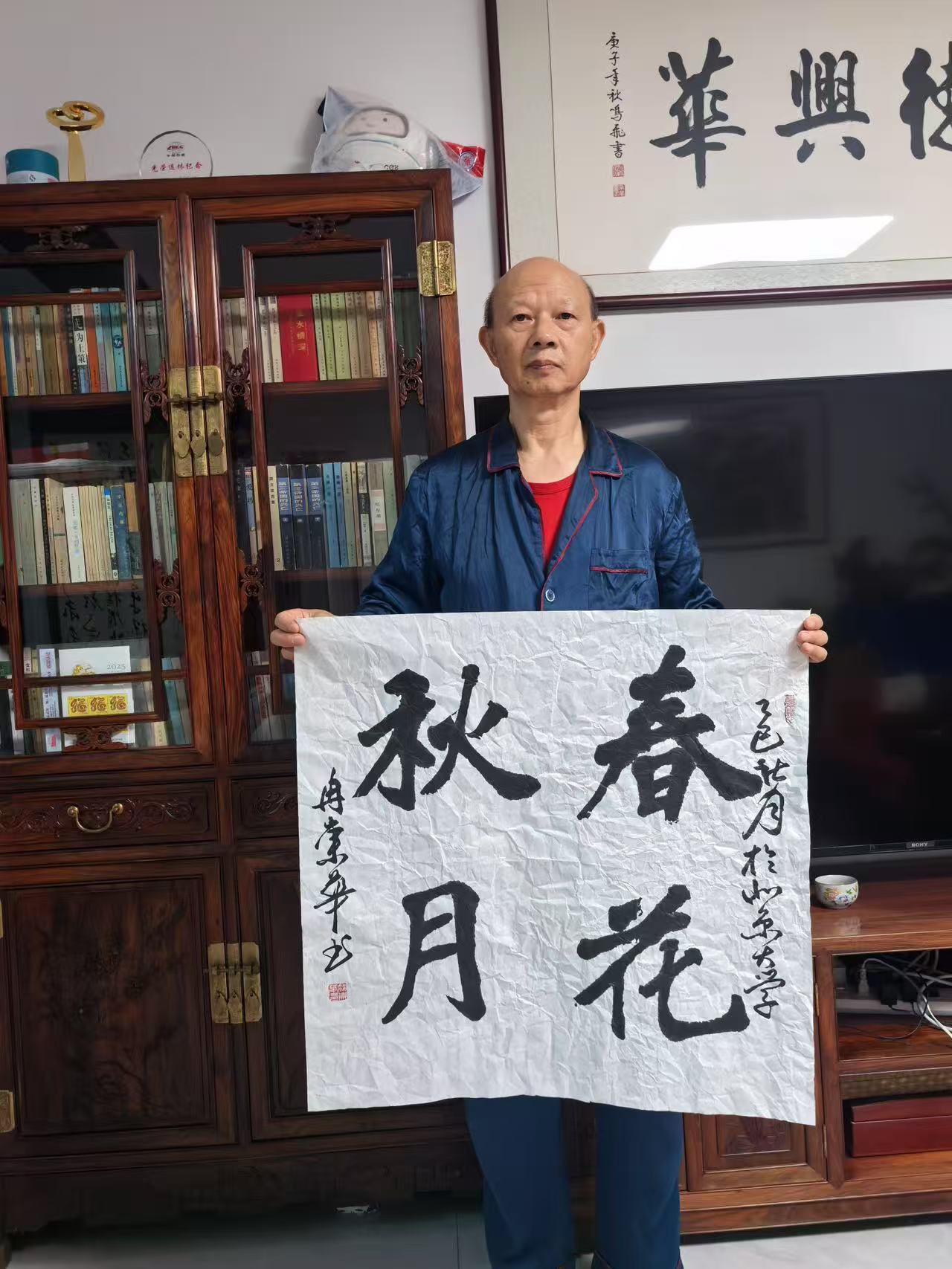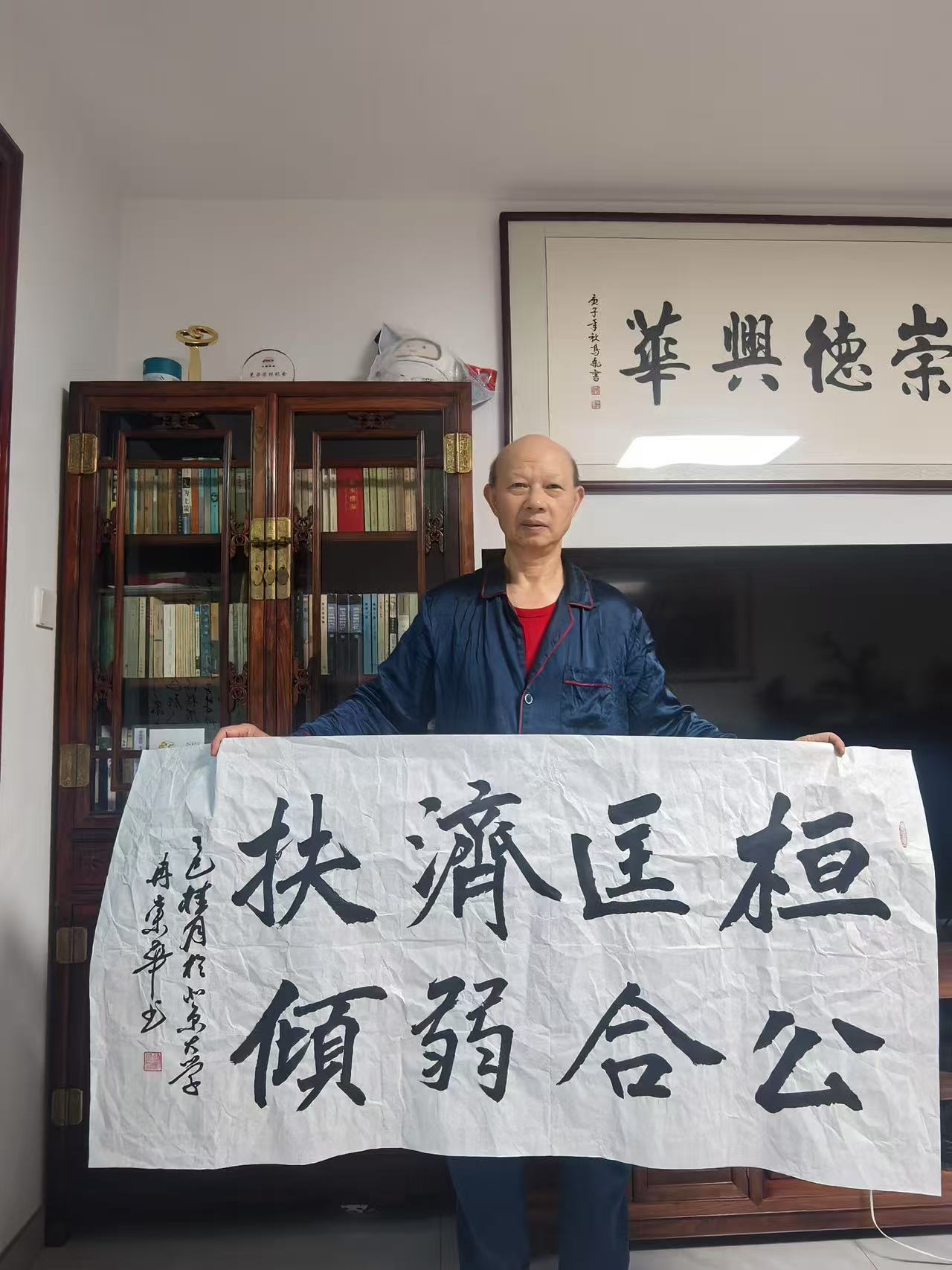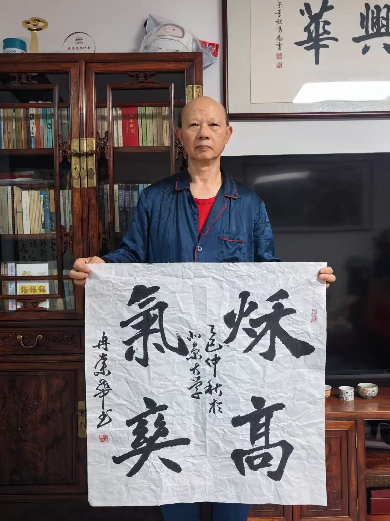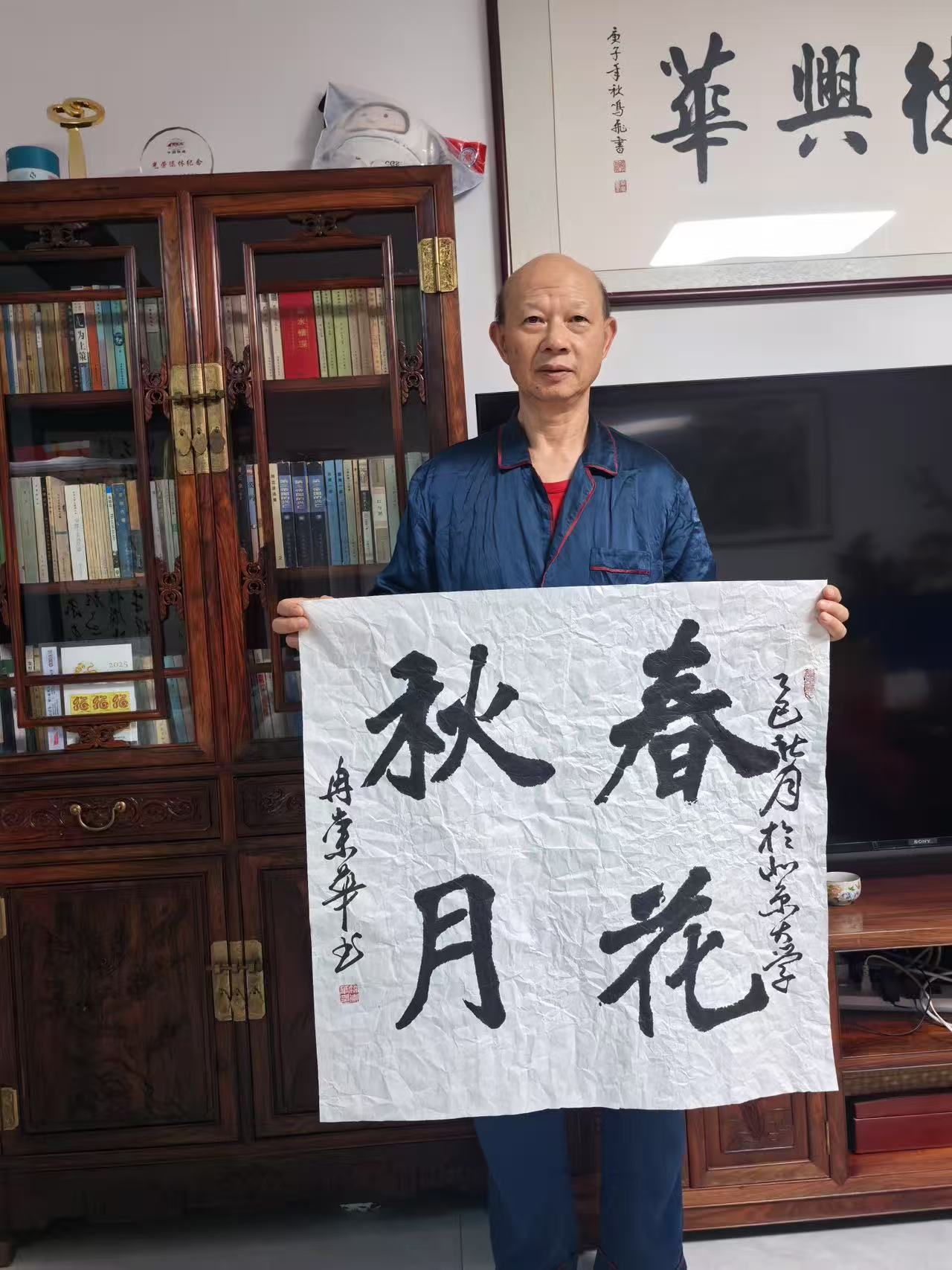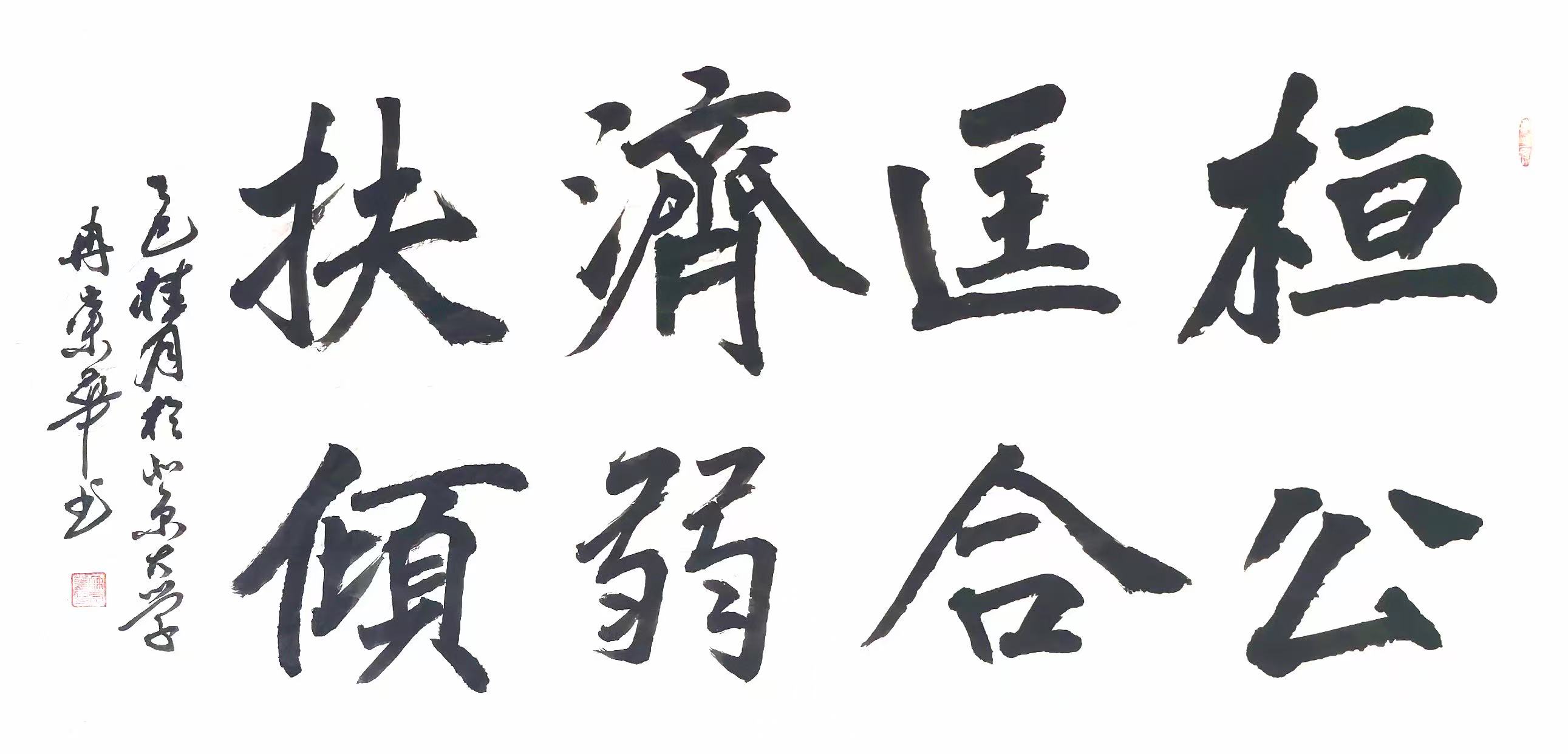 冉崇华长期参与社会公益,通过书法义卖为灾区筹款。2024年河南水灾期间,他创作的《松花酿酒春水煎茶》以八分书书写,被拍卖出高价,所得款项全部捐赠灾区。这种“艺术与慈善结合”的模式,被中国慈善联合会称为“书法家社会责任的标杆案例”。同时,他定期为社区老人开设书法课,将作品捐赠给养老机构,被北京市民政局授予“文化养老突出贡献奖”。