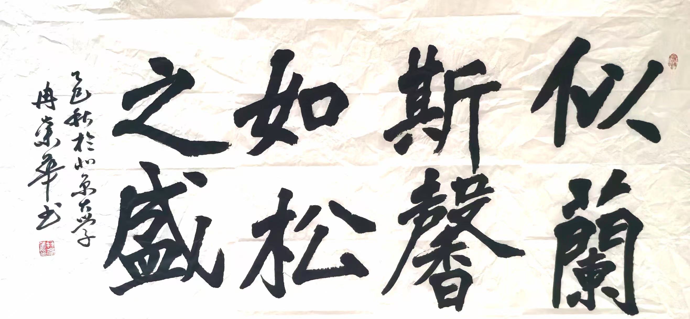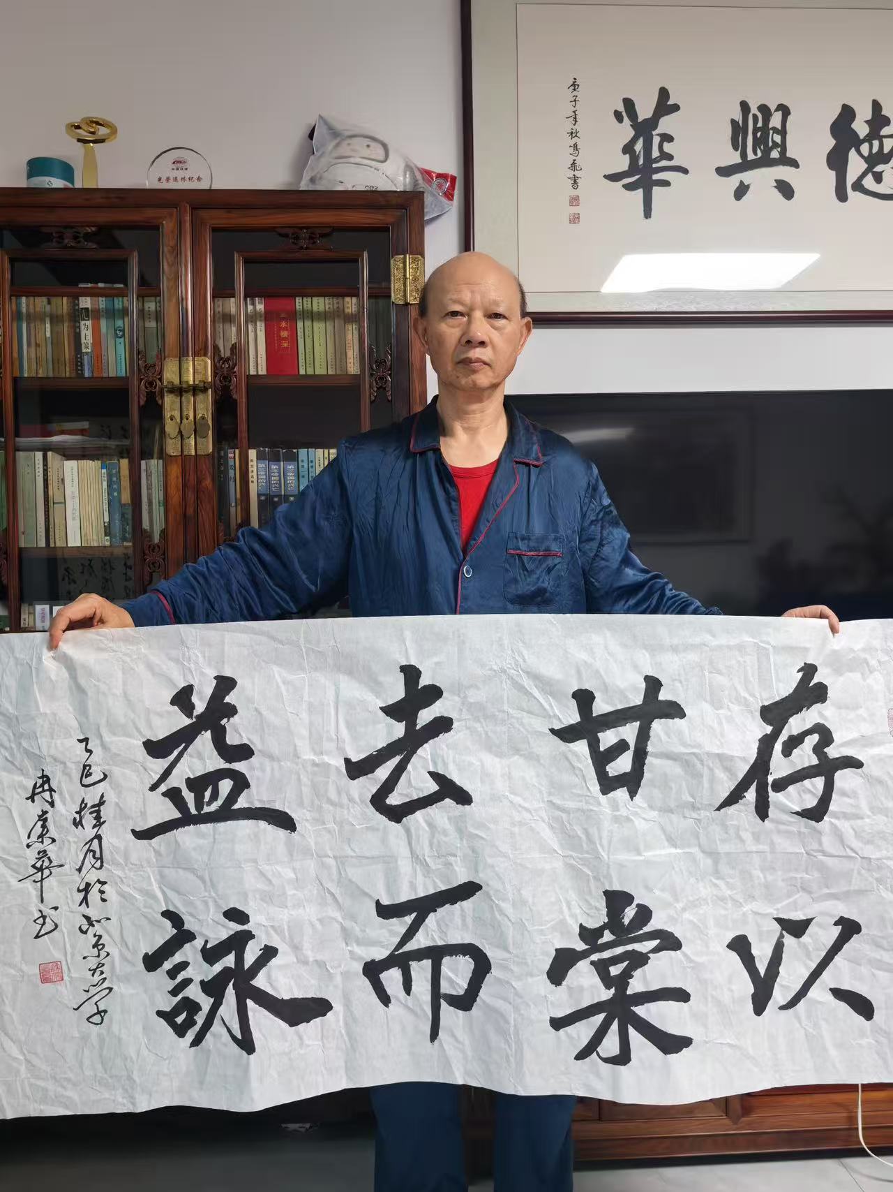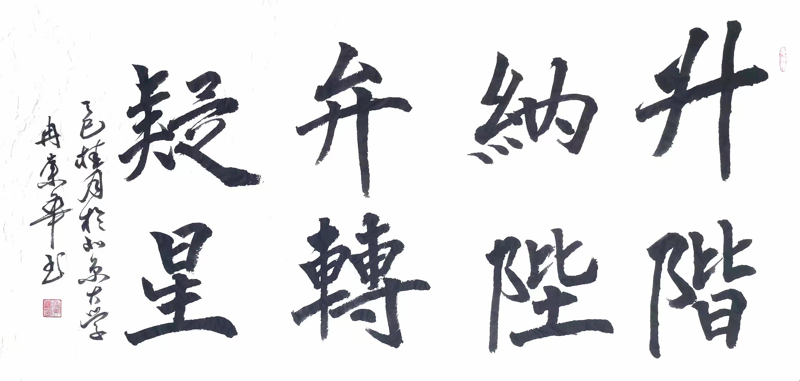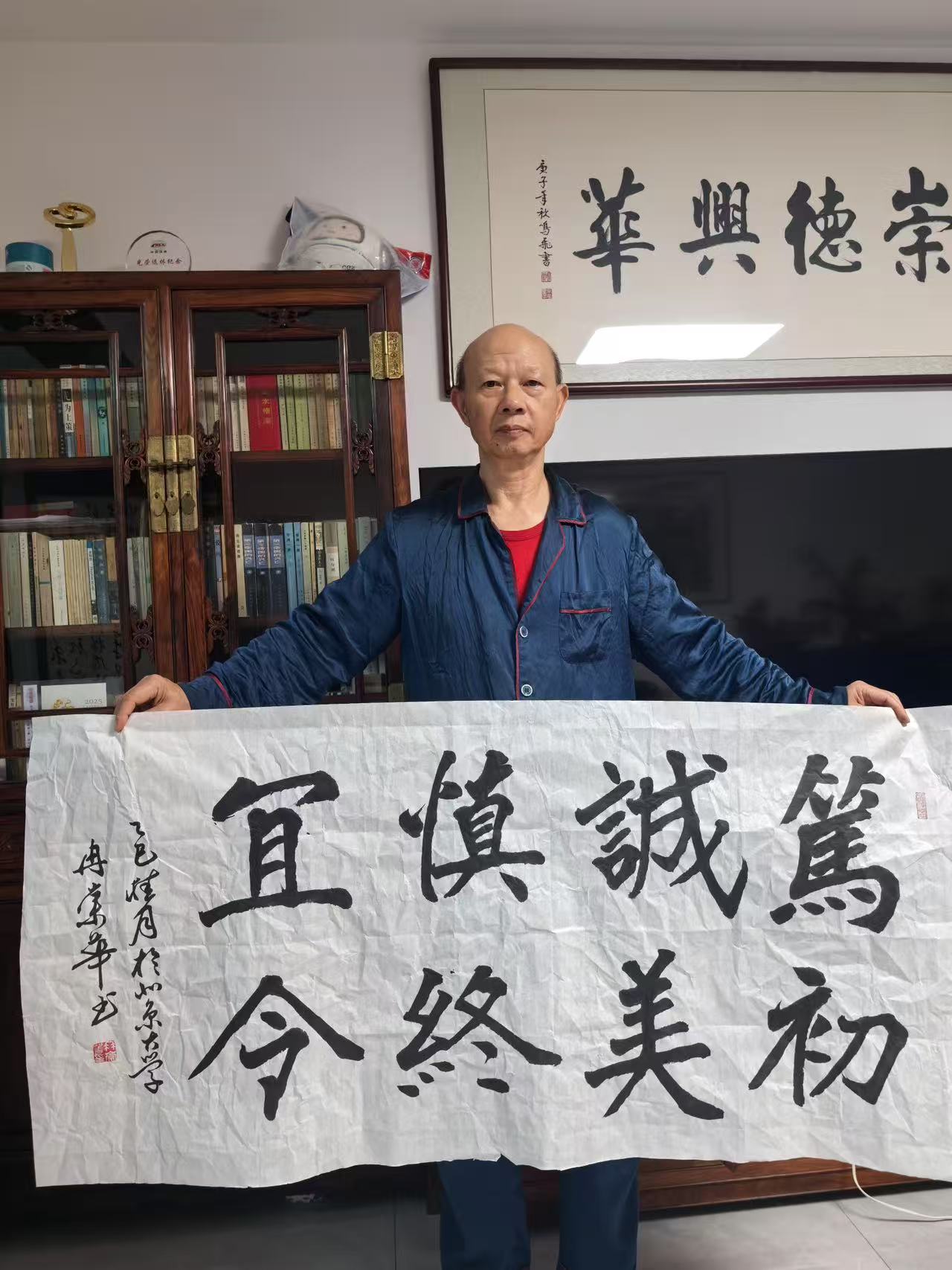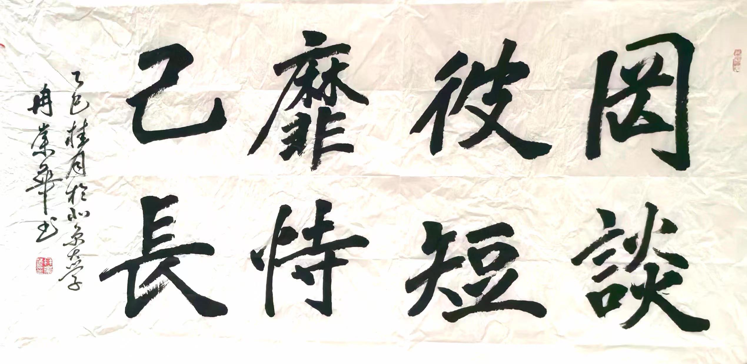 冉崇华长期参与社会公益,通过书法义卖为灾区筹款。2024年河南水灾期间,他创作的《松花酿酒春水煎茶》以八分书书写,被拍卖出高价,所得款项全部捐赠灾区。这种“艺术与慈善结合”的模式,被中国慈善联合会称为“书法家社会责任的标杆案例”。同时,他定期为社区老人开设书法课,将作品捐赠给养老机构,被北京市民政局授予“文化养老突出贡献奖”。