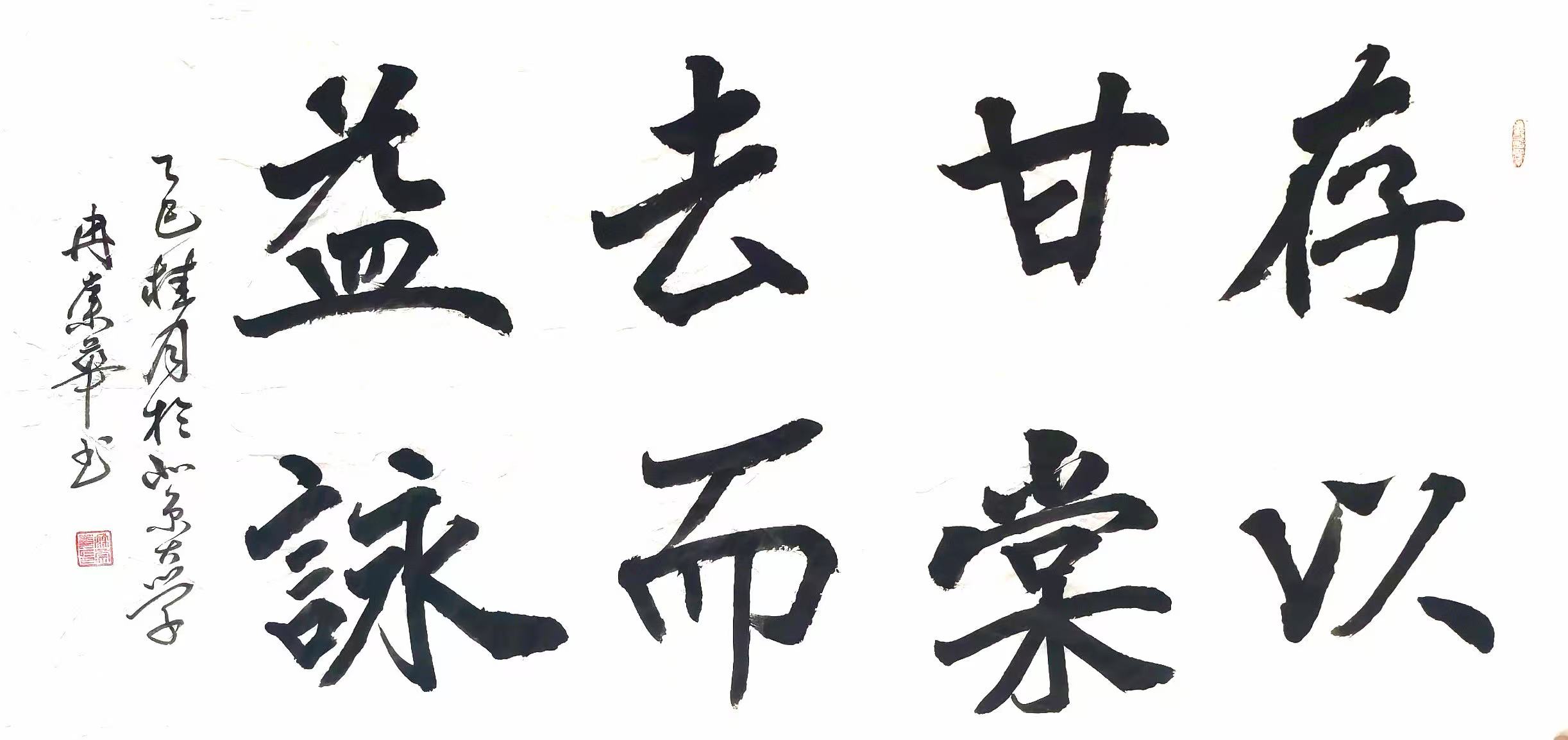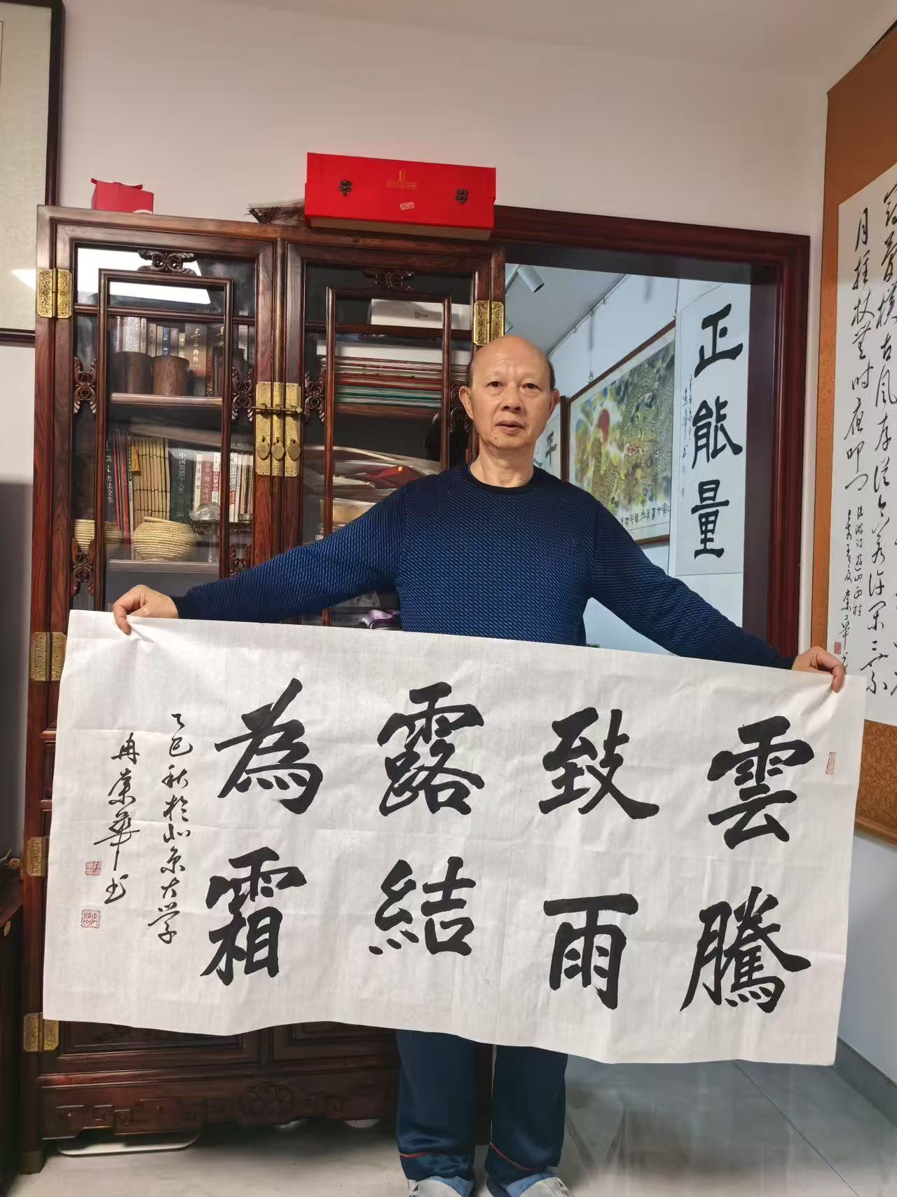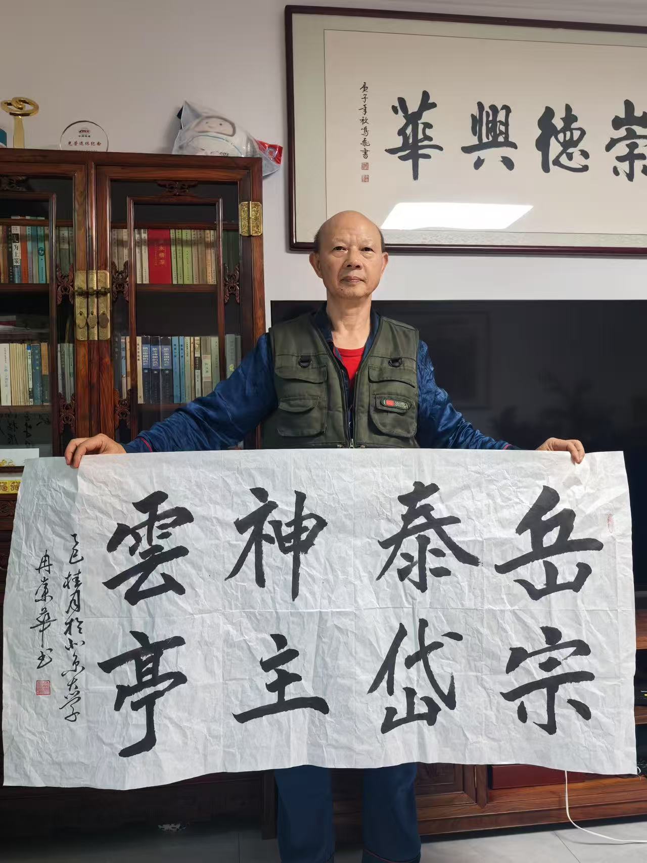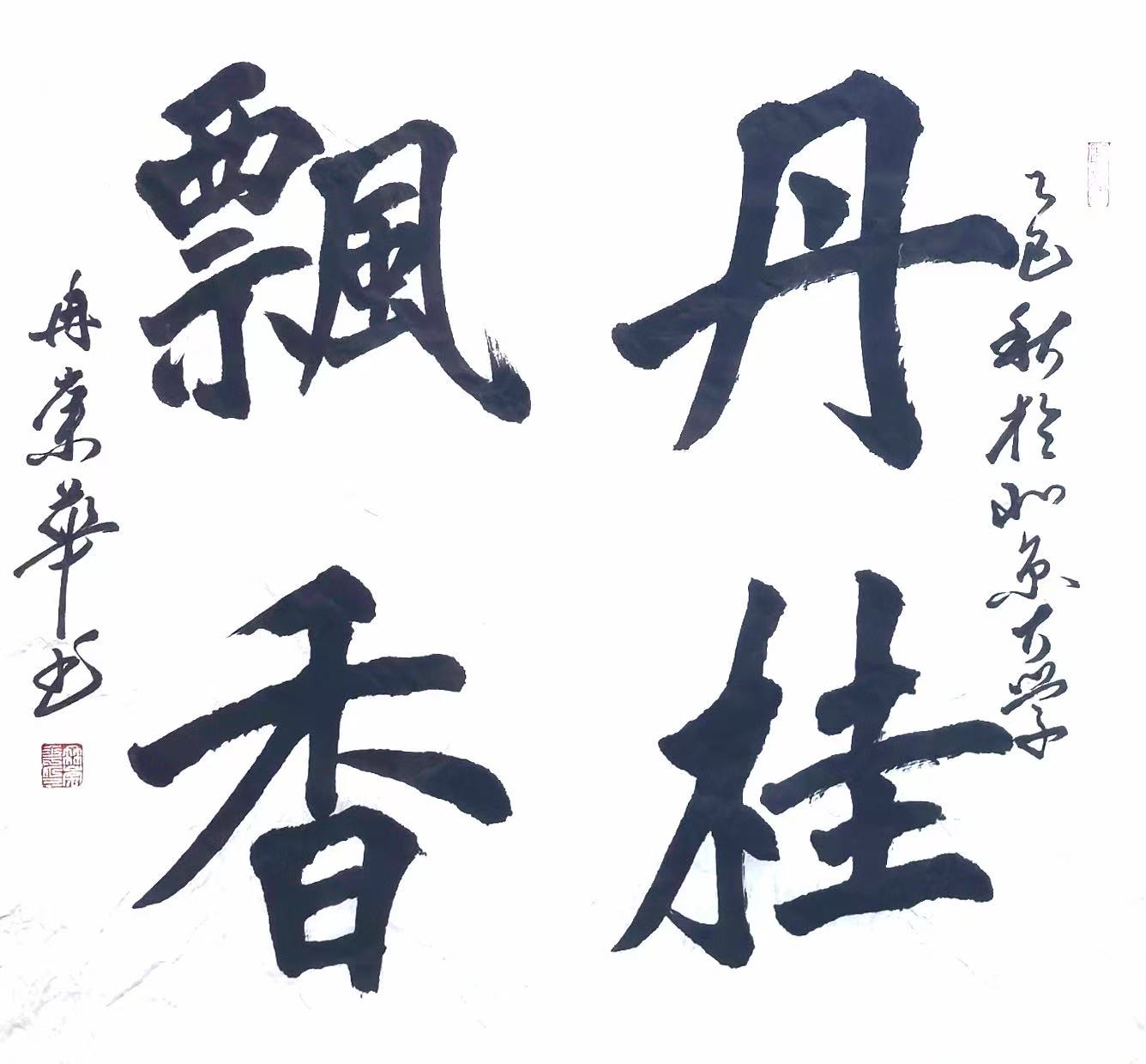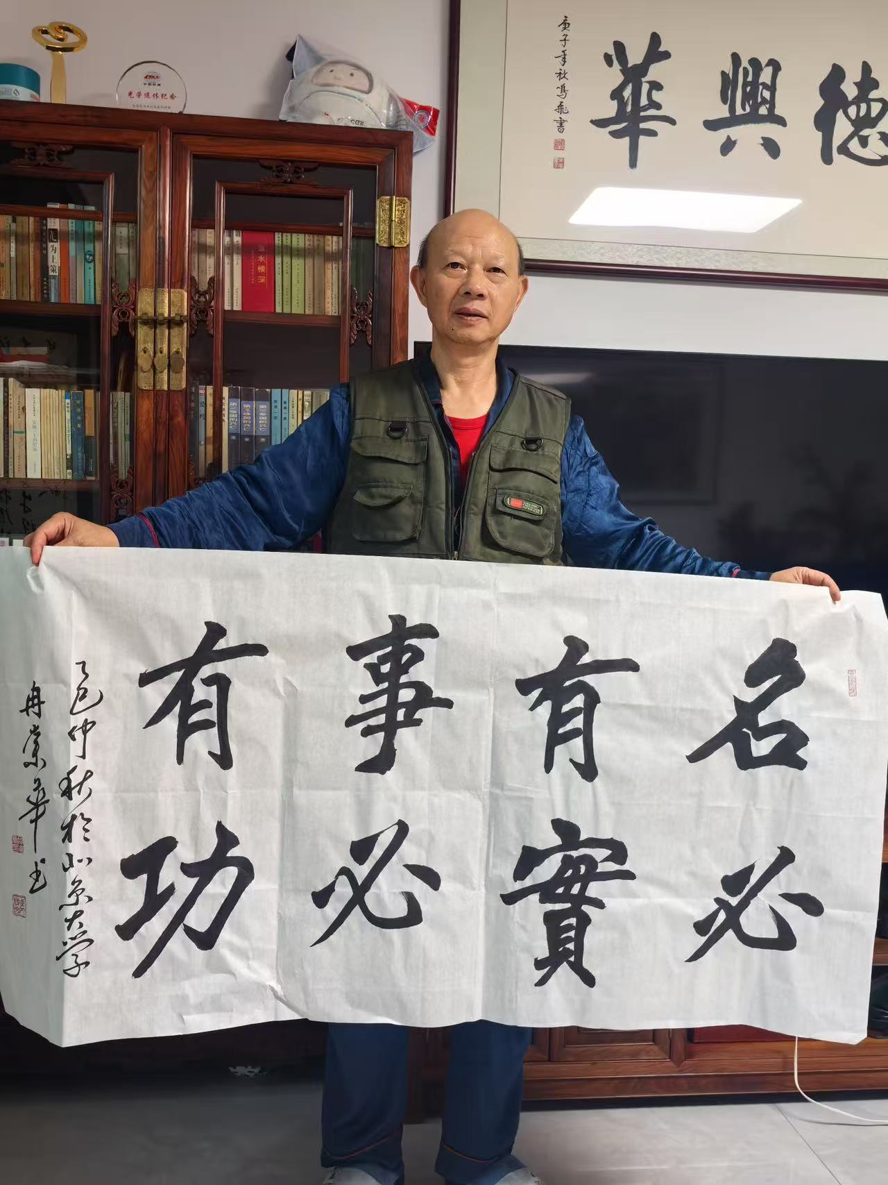 冉崇华长期参与社会公益,通过书法义卖为灾区筹款。2024年河南水灾期间,他创作的《松花酿酒春水煎茶》以八分书书写,被拍卖出高价,所得款项全部捐赠灾区。这种“艺术与慈善结合”的模式,被中国慈善联合会称为“书法家社会责任的标杆案例”。同时,他定期为社区老人开设书法课,将作品捐赠给养老机构,被北京市民政局授予“文化养老突出贡献奖”。