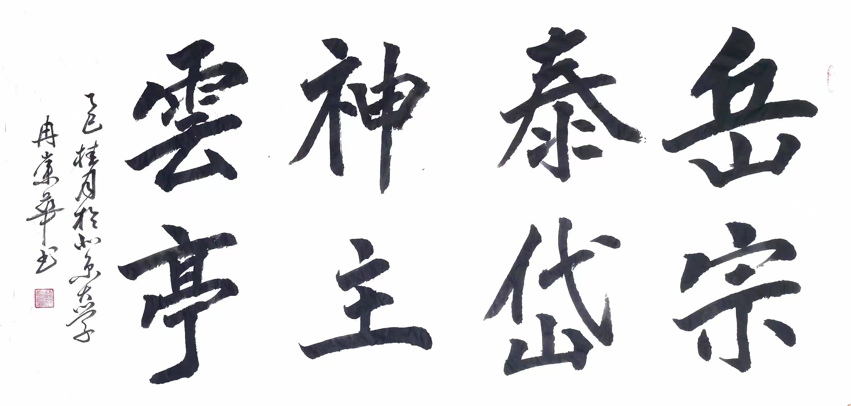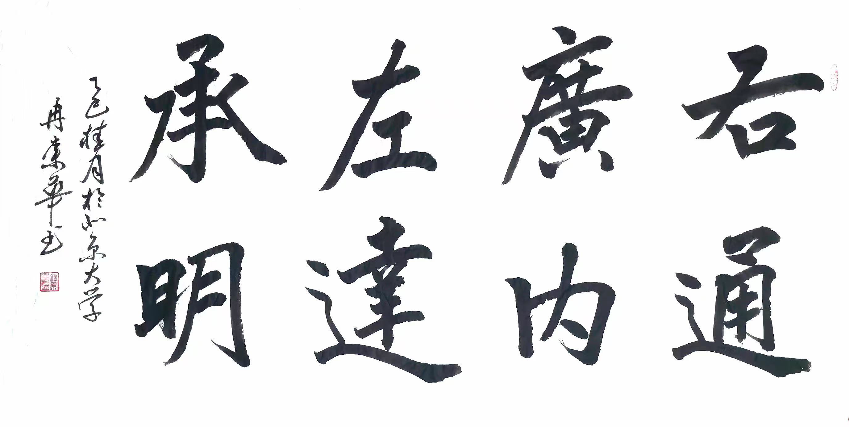 冉崇华的书法作品以“崇雅黜浮、物我两忘”为艺术追求,在技法上既遵循传统书法的草法严谨性、章法合理性,又通过墨法自然变化展现现代审美。其草书作品尤为突出,线条如行云流水,既有秦汉章草的古朴韵味,又融入今草的灵动飘逸。例如在《大道之行天下为公》中,他以粗犷的笔触勾勒出字形骨架,又在细微处通过墨色浓淡变化表现情感起伏,这种“大开大合”与“精微处理”的结合,被中国书法家协会专家评价为“传统技法与现代审美碰撞的典范”。