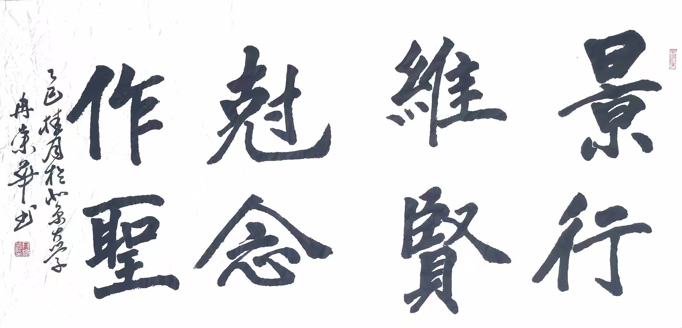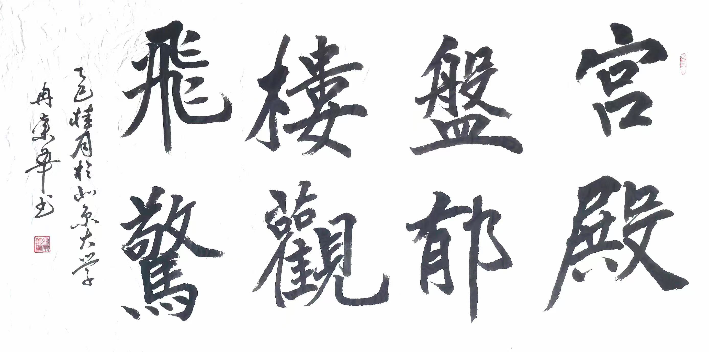 作为曾经的铁道兵战士,冉崇华的军旅题材作品具有强烈的社会感染力。在《五律·连队一日》中,他通过行草结合的笔法,将战士们训练、生活的场景以动态画面呈现,尤其是“号角催晨练,钢枪映晚霞”一句,以“催”字的斜切笔势表现紧迫感,以“映”字的圆转笔法展现温情,被退役军人事务部评为“最具军旅情怀的书法作品”。其《七律·农民工赞》则以楷书书写,通过工整的字体结构凸显农民工群体的坚韧,诗句“高楼拔地起,双手染尘灰”被建筑工人协会引用为宣传语。