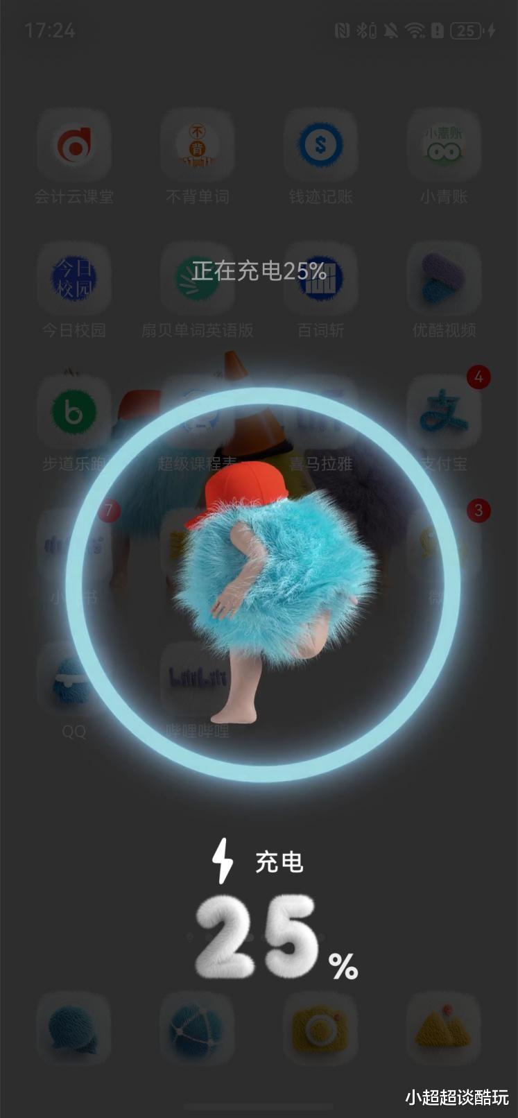 它把一些日常的瞬间变得很有趣。比如下班回家给手机充电,屏幕上会显示毛球在使劲跑步,用一种很“物理”的方式在充电。看着它努力的样子,感觉自己一天的疲惫都被治愈了,像在陪我一起回血。