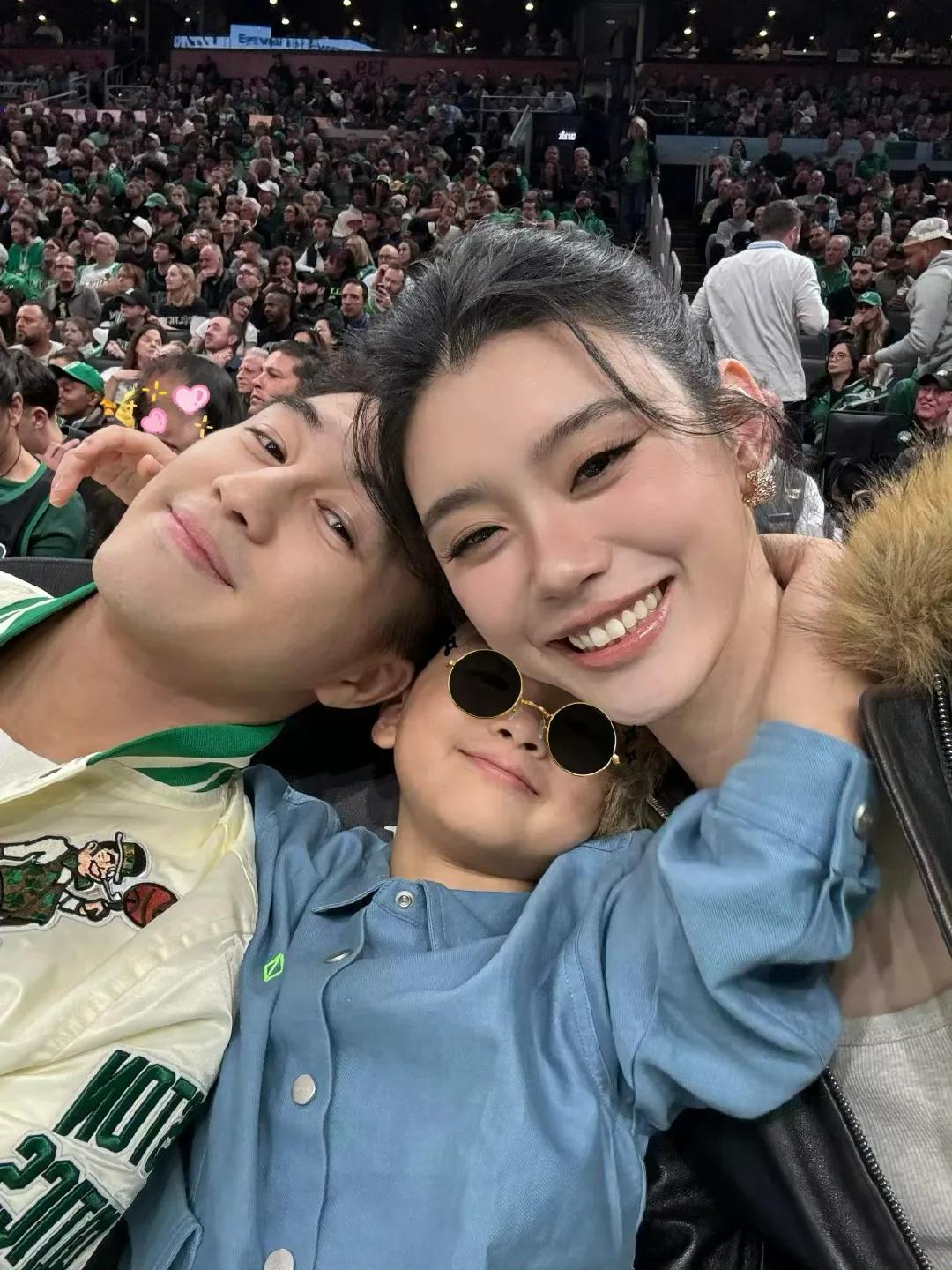 奚梦瑶和何猷君还带着儿子一起去看球赛,一家三口坐在前排,拍下同框合影。奚梦瑶大长腿抢镜,不愧是超模呀,颜值身材都在线。何猷君搂着儿子,虽然何广燊眼睛被贴纸遮住了,但也能看出五官模样和爸爸何猷君超像。