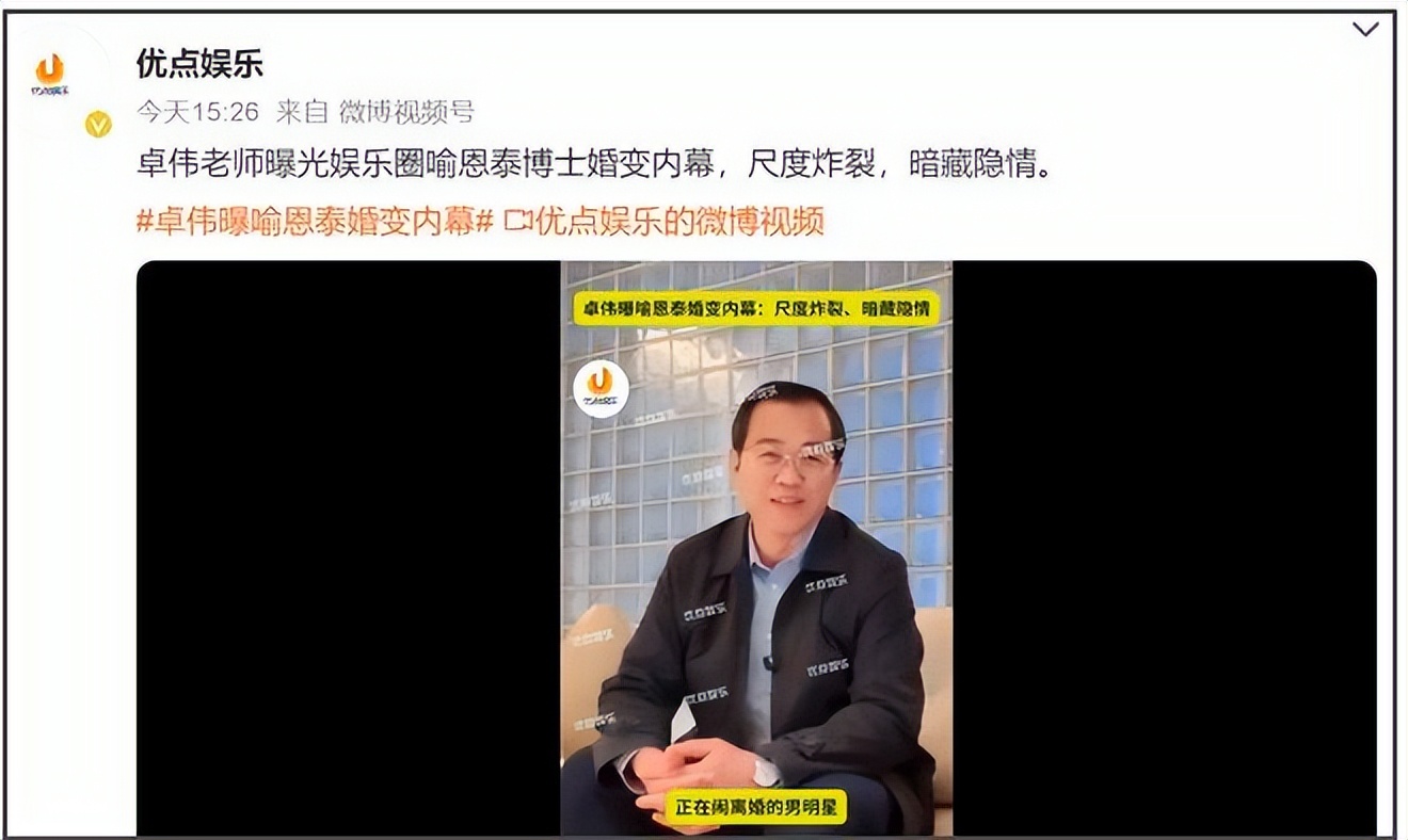资深狗仔卓伟的“周一见”再次抛出震撼弹——曾在《武林外传》中饰演吕秀才的喻恩泰陷入婚变风波。