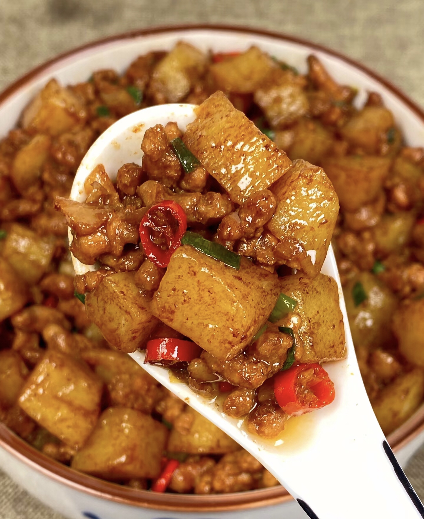 宝子们,今天教大家做一道香浓入味、营养丰富的经典家常菜——肉沫土豆。这道菜将猪肉的鲜美与土豆的绵软完美结合,特别适合喜欢尝试新口味的朋友。无论是作为日常餐桌上的主菜还是招待朋友时的特色菜肴都非常合适。跟着下面的步骤,轻松在家做出让人赞不绝口的肉沫土豆吧!