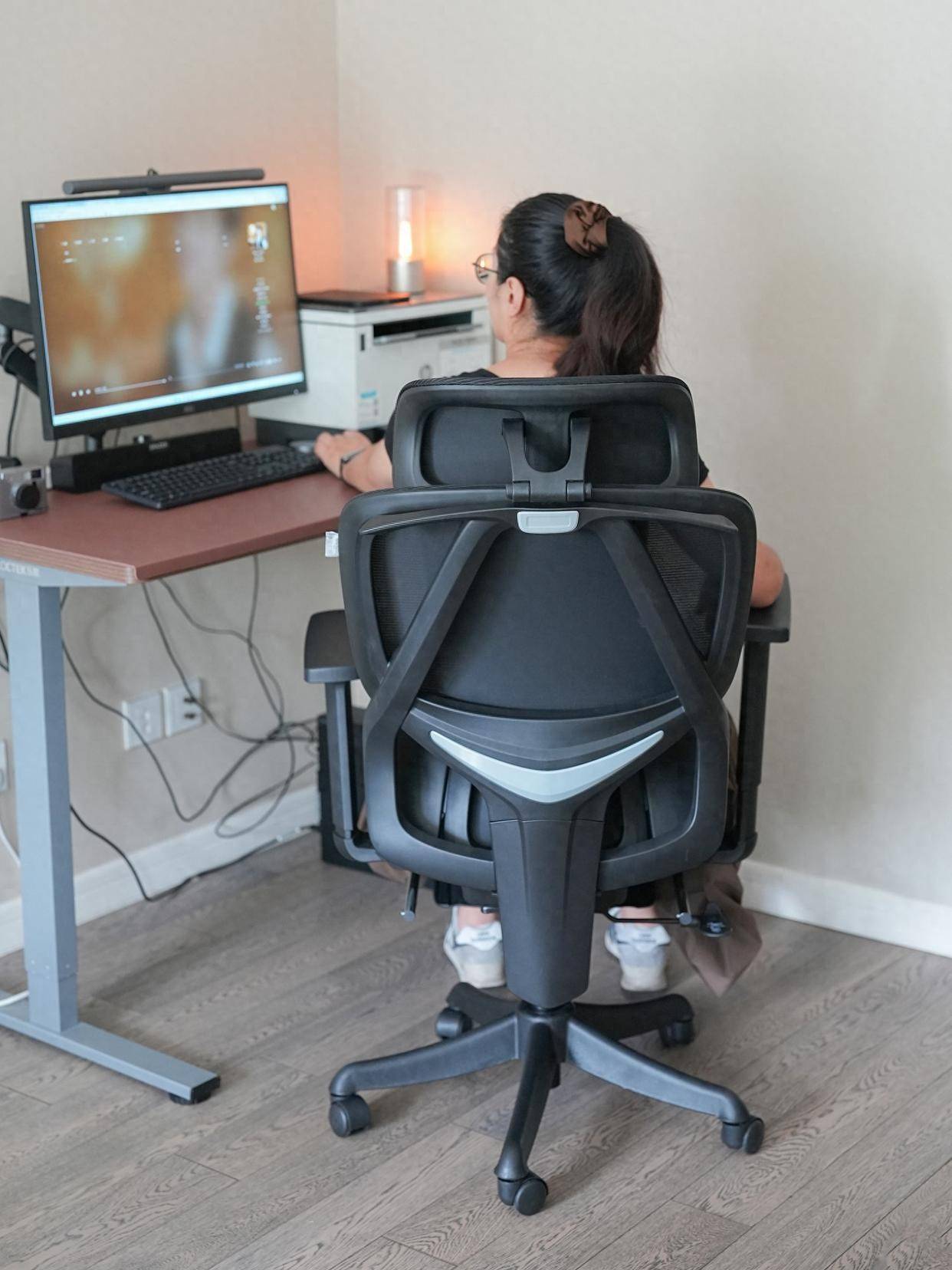 ③调节越细,坐姿越顺——一把好椅子不只是能升降。头枕、扶手、靠背、坐深都要可调,才能适配不同体型和使用场景。部分椅子还有重力联动功能,可自动调节后仰阻力。