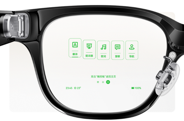 当 “音频+拍摄” 成为市场标配,AR显示技术的突破成为品牌差异化竞争的关键。目前,单绿显示AR眼镜凭借成熟的技术路线,已实现初步落地,在导航、信息提示等场景中展现出独特价值。