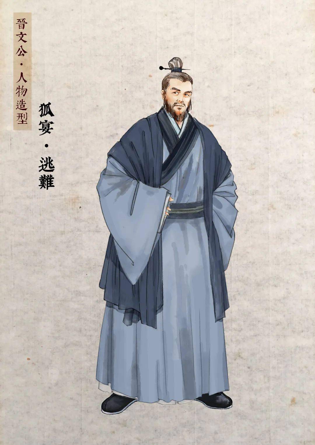 狐偃(?— 公元前 629 年),姬姓,狐氏,名偃,字子犯,又称舅犯、狐子犯,出身晋国狐氏家族,其先祖为狄族部落首领,后归附晋国,成为晋国望族,狐偃的姐姐狐姬是晋文公重耳的生母,因此狐偃与重耳既是君臣,又是至亲。狐偃自幼饱读诗书、研习兵法,兼具政治远见与军事才能,青年时期便在晋国朝中任职,深得晋献公信任,却因 “骊姬之乱”,为保护重耳,选择随其流亡。