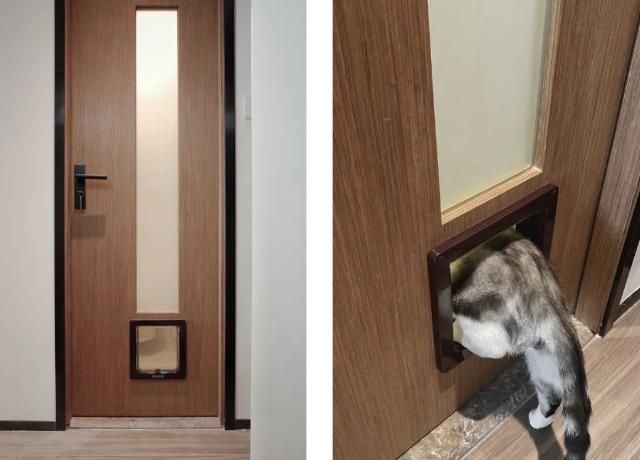 门上定制喵星人进入专用的小门洞,不影响门的关闭