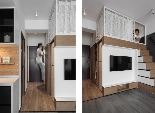 阁楼卧室+电视背景墙+楼梯打造箱式共同体