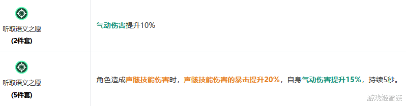 选气动新合鸣【听取语义之愿】,提供给耙耙柑造成声骸技能伤害时的声骸伤害暴击提升,还有25%的气动伤害提升
