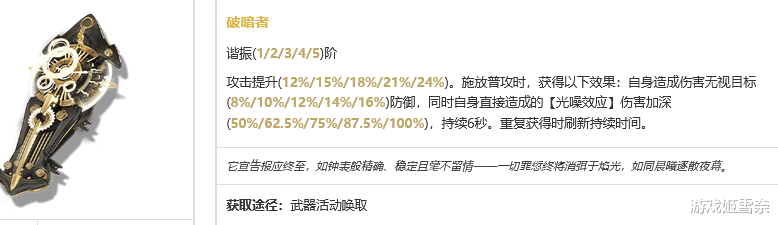 优先专武昭日译注不用说,攻击提升,变奏和声骸技能释放提供声骸技能加深,顺带还有气动伤害无视防御,第一个加强声骸伤害的臂铠,完美符合耙耙柑需求。