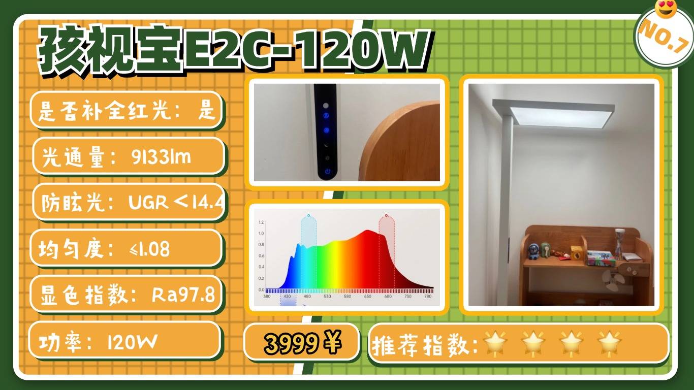 护眼大路灯排名前十的品牌有哪些?这款E2C120W是孩视宝的基础款,这款护眼大路灯从外观上看比较简约,上下发光的设计有效减少了光线的明暗差,带来宽广的照明,一定程度上减轻了视觉负担,另外在核心光源上,它采用全光谱灯珠、显色指数大约可达 Ra97.8,功能上,它支持无级调光、入席感应、上下分控等功能,底座也有滑轮移动比较简单,不过也有一些要点需注意,视觉上整体的光感比较强,也伴随着出现了一些轻微的眩光。