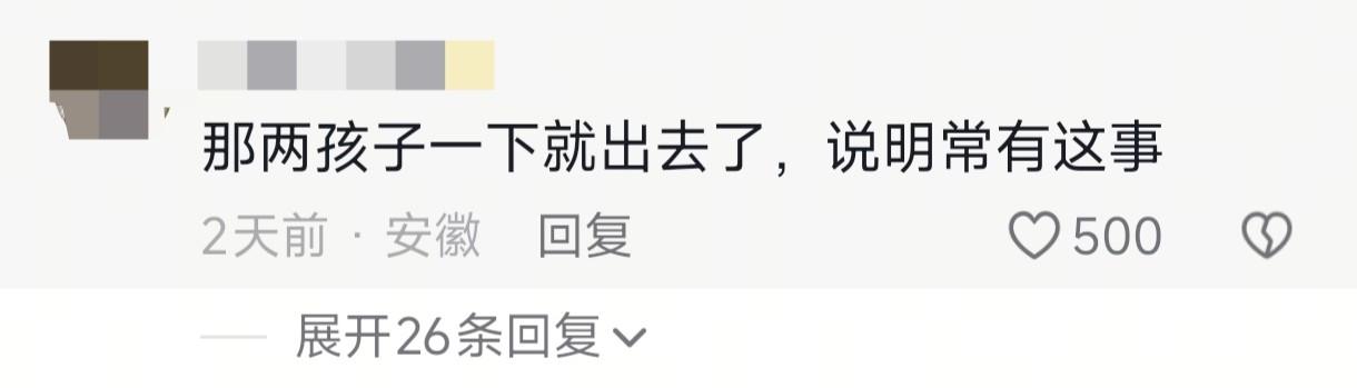 有网友说,当男人示意两个男孩儿出去的时候,两个男孩儿很快就走出去了,说明这种事常有发生。