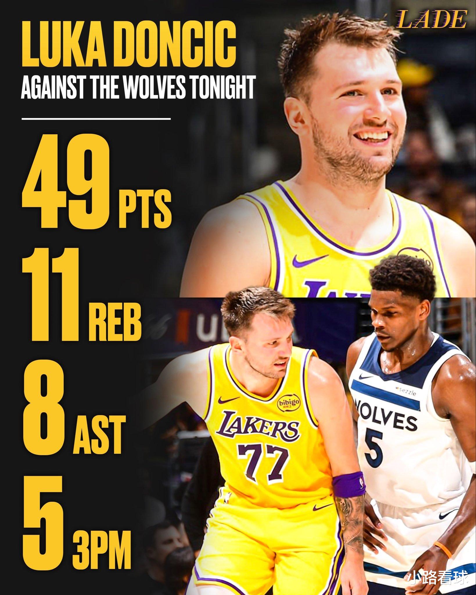 回顾本场比赛,湖人不少球员都发挥出色,里夫斯25分7篮板11助攻,八村垒23分2篮板,艾顿15分8篮板,全面开花的湖人内外兼修,让森林狼难以招架。而要说道本场比赛湖人获胜的首功之臣,无疑是还是东契奇,全场比赛,东契奇出战34分钟,23投14中,其中三分球12投5中,罚球19投16中,得到49分11篮板8助攻。