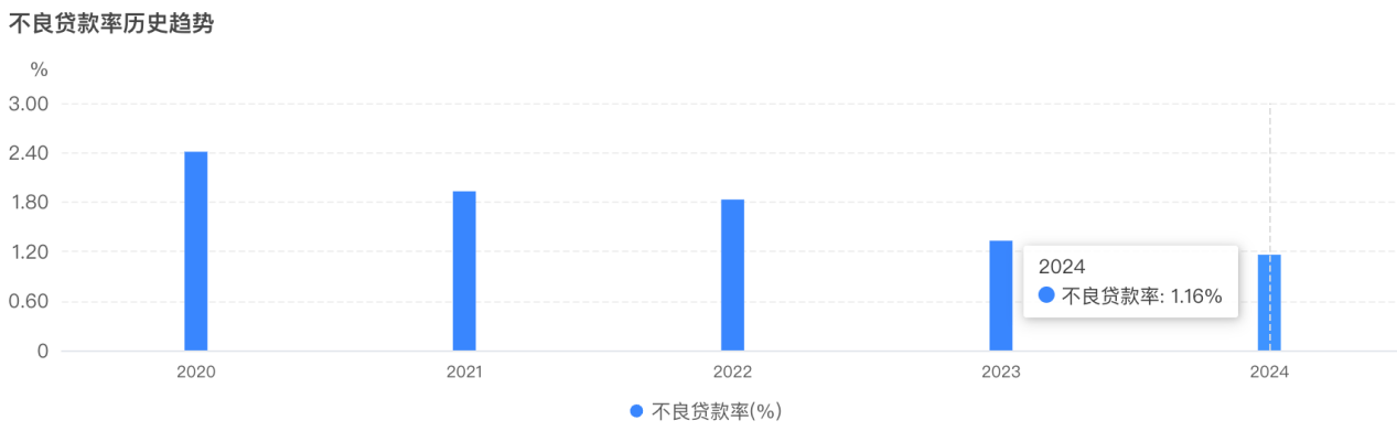 此外,风险指标似乎也在改善,2022—2024年不良贷款率分别为1.83%、1.33%、1.16%,下降明显;此外,同期拨备覆盖率分别为160.74%、182.23%、270.47%,风险抵补能力增强。