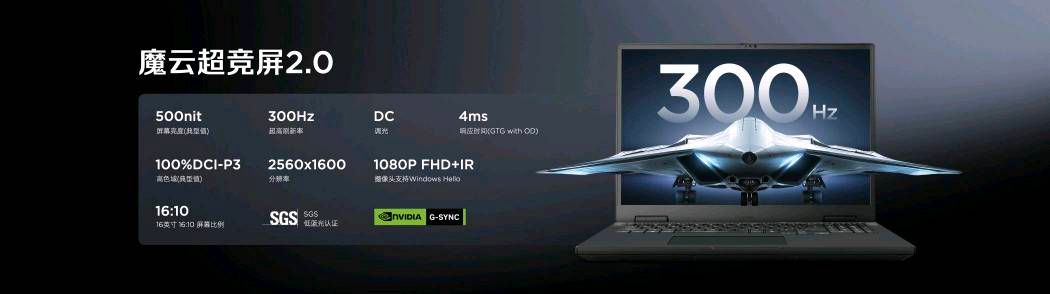 屏幕配备16英寸300Hz刷新率魔云超竞屏2.0,在刷新率、色域、响应速度与护眼上全面升级,适配不同游戏与使用场景。配备16英寸屏幕,分辨率达2560x1600,300Hz超高刷新率搭配4ms GTG响应时间,无论是FPS类对流畅度要求极高的游戏,还是快速滑动网页、文档,画面都无拖影、无卡顿,流畅度拉满。