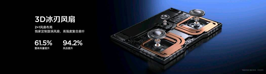 红魔作为行业内率先将散热风扇植入手机的品牌,始终在风扇技术上迭代深耕。通过上千种风扇模块的测试与优化,不断探索风冷散热的最优解,此次更是将风扇升级至24000r/min 的驭风4.0 版本。不仅拥有高转速优势,能快速带走热量,还具备防水特性与大风道设计,进一步提升了风冷效率与使用安全性。